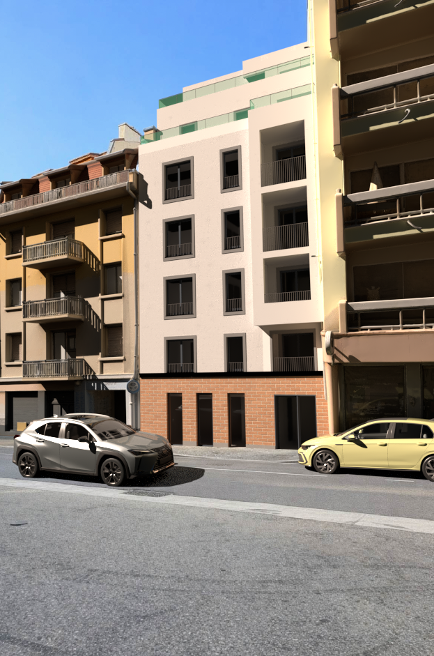 photorealistic architectural rendering of an existing residential building facade strict requirements preserve 100 of the original architecture geometry proportions and composition do not modify any architectural elements windows balconies railings openings keep all details exactly identical controlled modification the main facade must be a uniform clean white finish apply a smooth even white plaster or painted render no texture change other than making it uniform keep all edges joints window frames and structural details intact no redesign only color and surface uniformity adjustment visual enhancement only improve lighting realism with natural sunlight soft shadows global illumination enhance material realism subtle reflections roughness micro details add physically accurate shadows and ambient occlusion improve sky with realistic atmospheric lighting clear blue sky environment keep street cars and surroundings identical in position and design improve realism of asphalt and contact shadows only no added or removed objects render style ultra realistic architectural visualization high dynamic range lighting hdr physically based rendering pbr 4k quality camera same perspective and framing eye level architectural photography 35mm lens equivalent negative prompt no redesign no geometry change no added elements no deformation no color variation on facade must be uniform white no stains no patterns no grunge no artistic reinterpretation