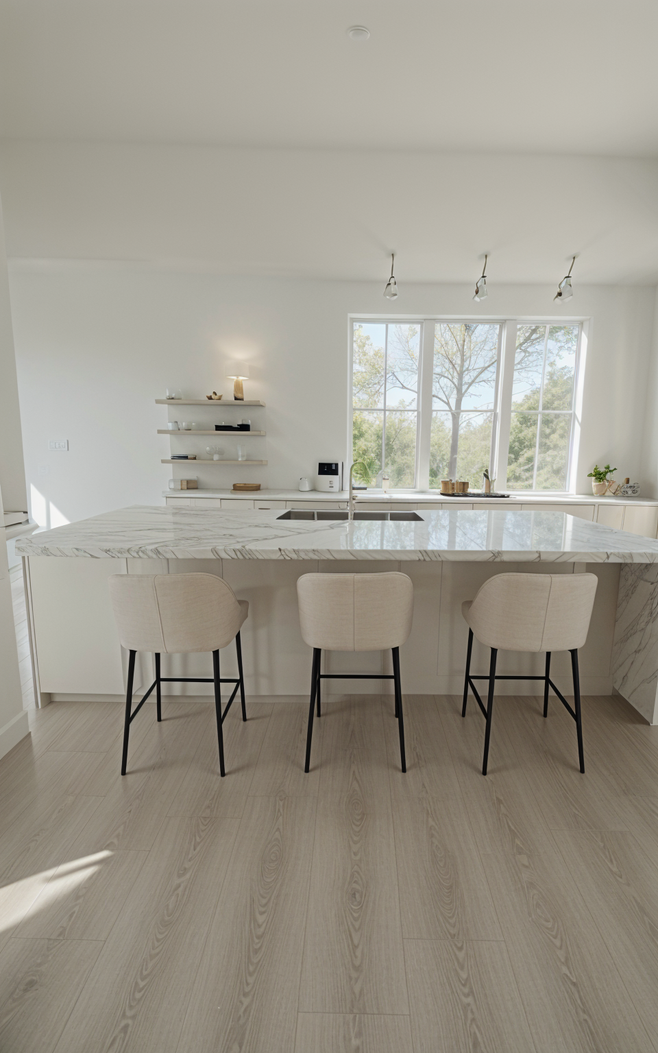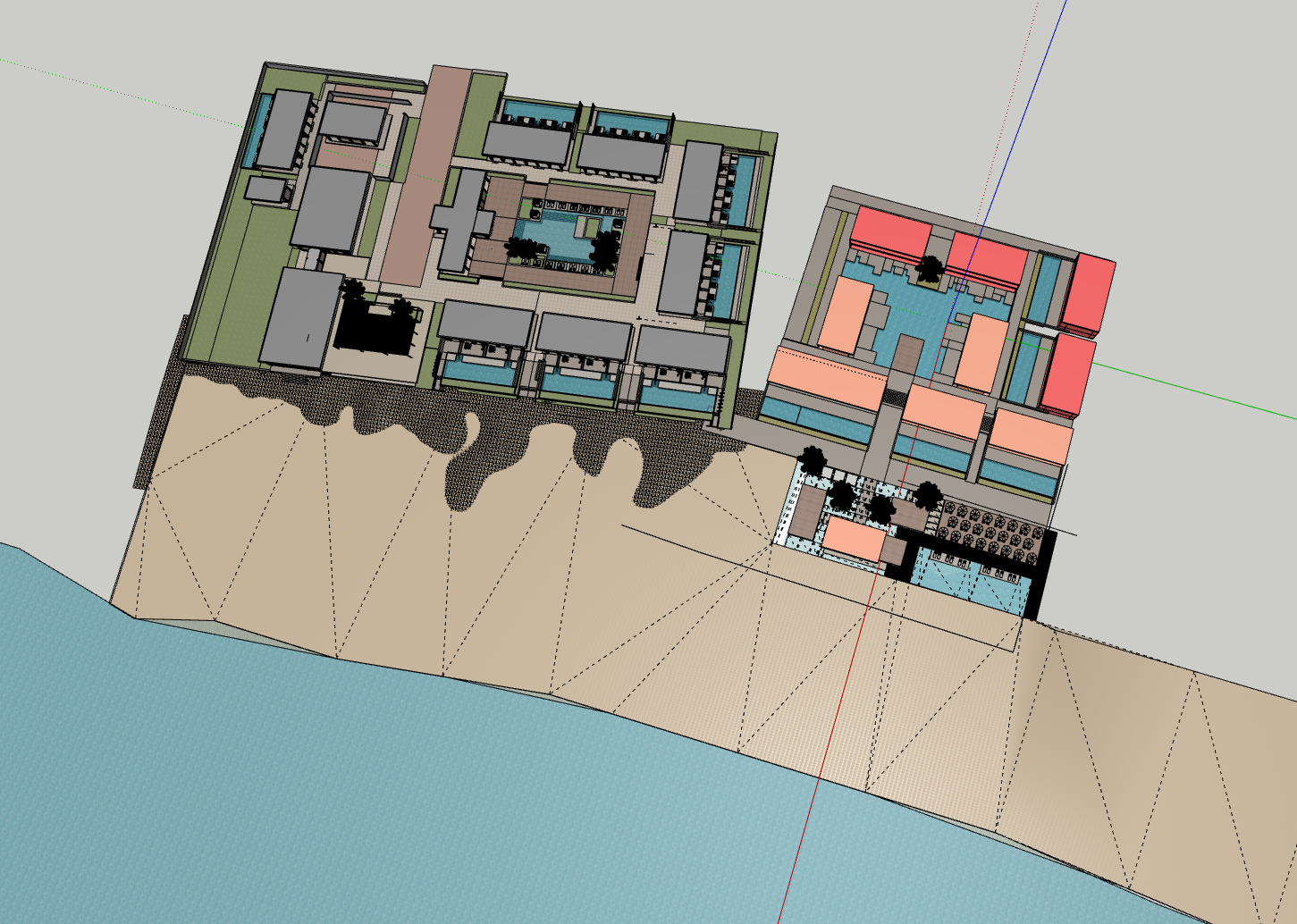 render a luxurious beachfront resort complex with modernminimalistic architecture golden hour
