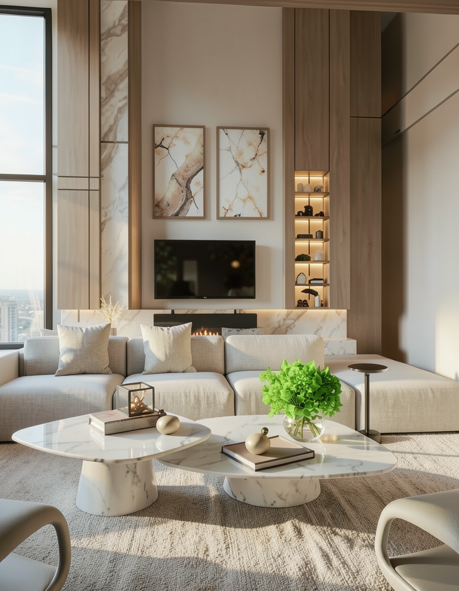 i want the building in the middle like it is and the two building in the left and right a little transparent