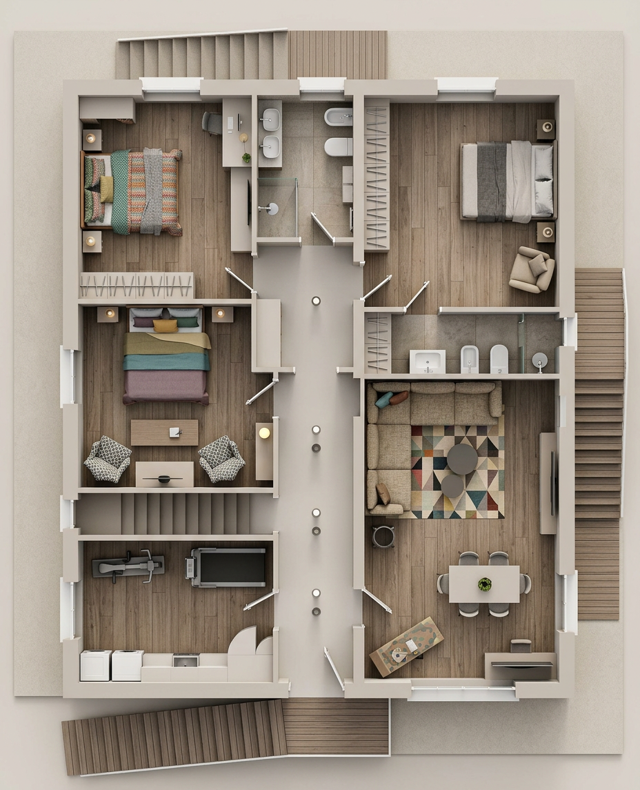 conserva colori e materiali due poltrone con rivestimento in pelle bianca lampada con struttura metallo cromato lucido lampada a parete uguale conserva pavimento le due porte colore bianco con parte superiore in vetro cannettato trasparente
