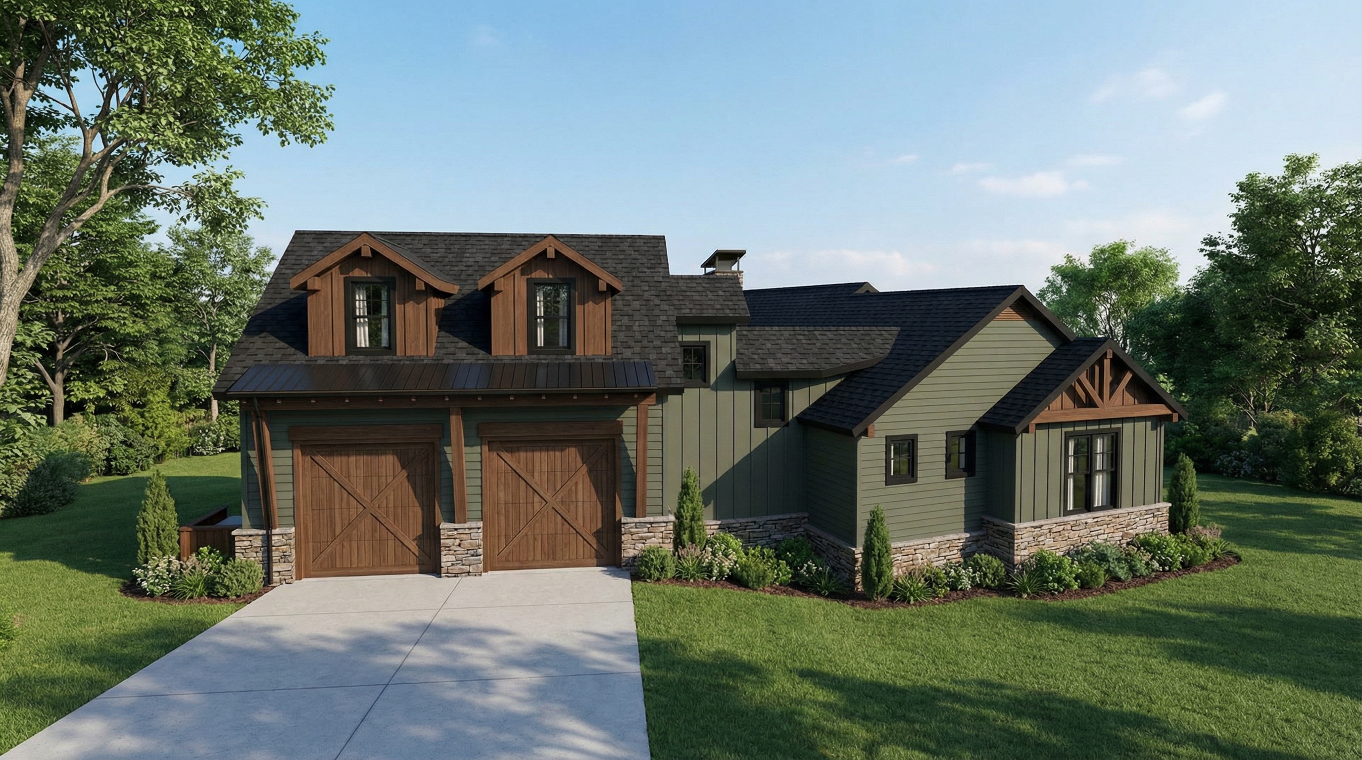 show this back elevation using the colors from what is one the reference image which is the side view of the home