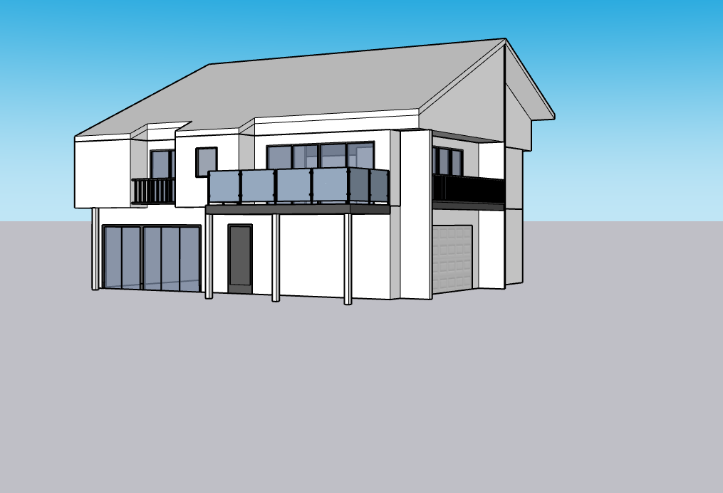 exterior shot un render de la misma casa que el mood board la unica diferencia es el deckdel segundo piso
