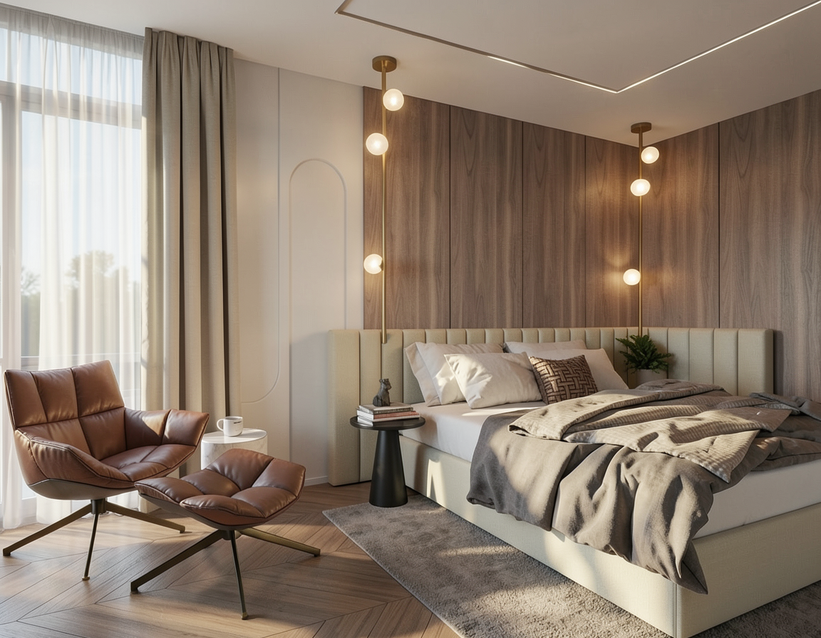 mid morning lighting foursquare house to the right with white lap siding iron railing between right and middle buildings