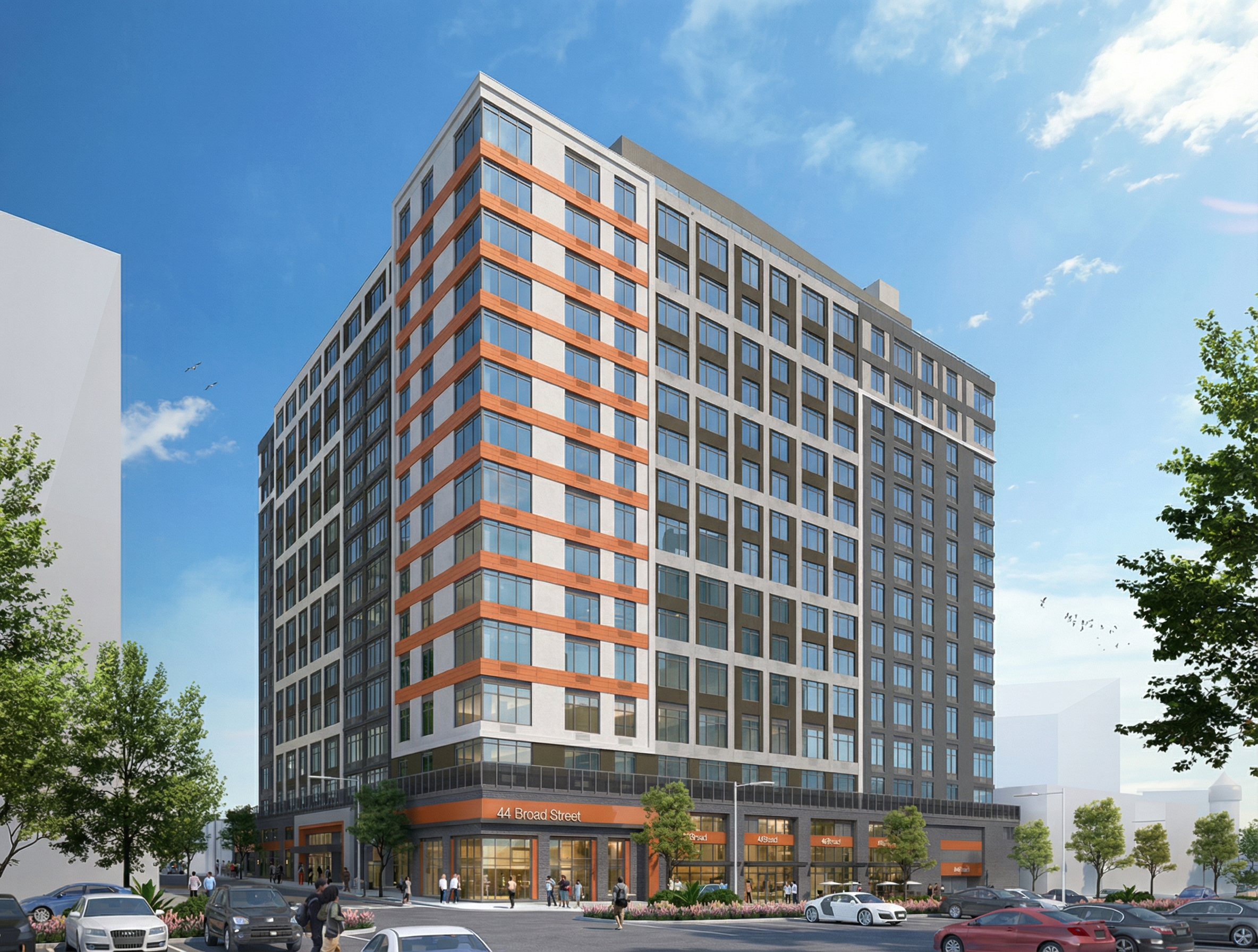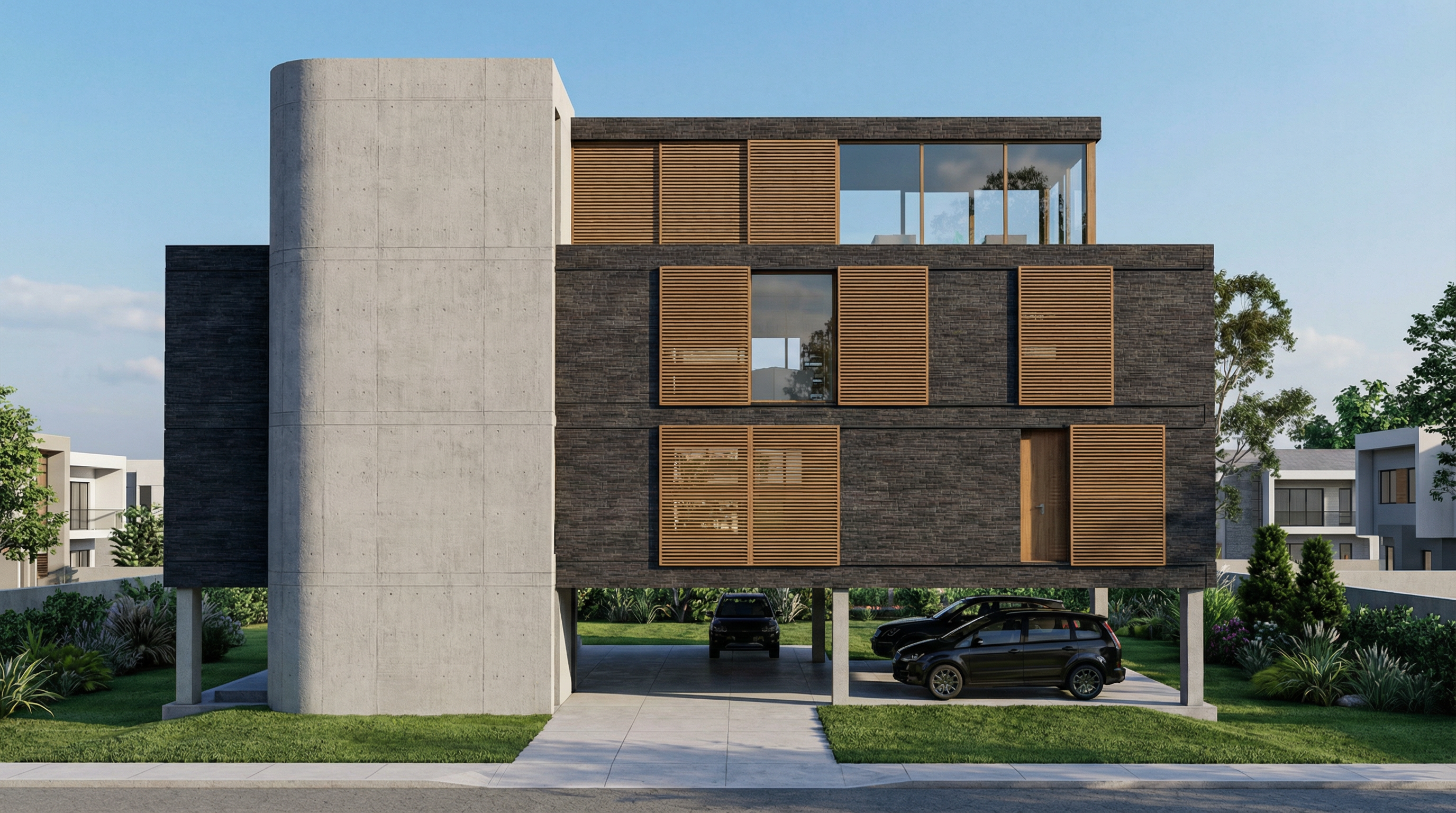 the building is facing south render at early evening