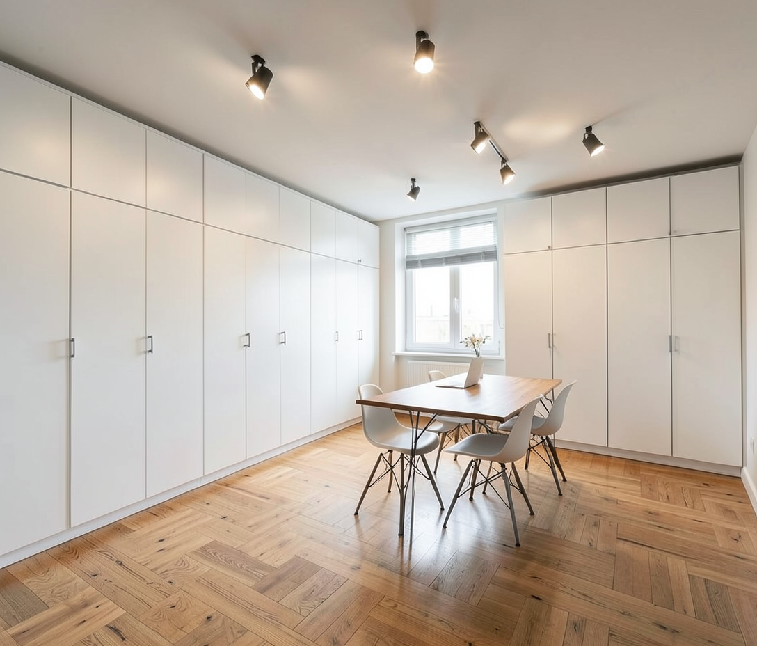create ultra realistic images without changing any structure shape design or materials do not resize the jpeg beige vinyl wooden floor cream wall panel beige fabric in chair and sofa