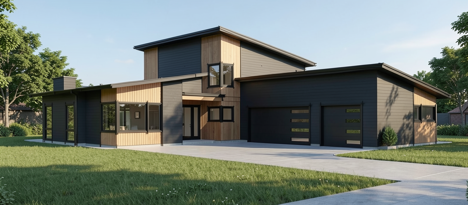 remove the stone cladding on the very right mass and replace with white stucco only keep the structure of the home the same don t change the background or landscaping