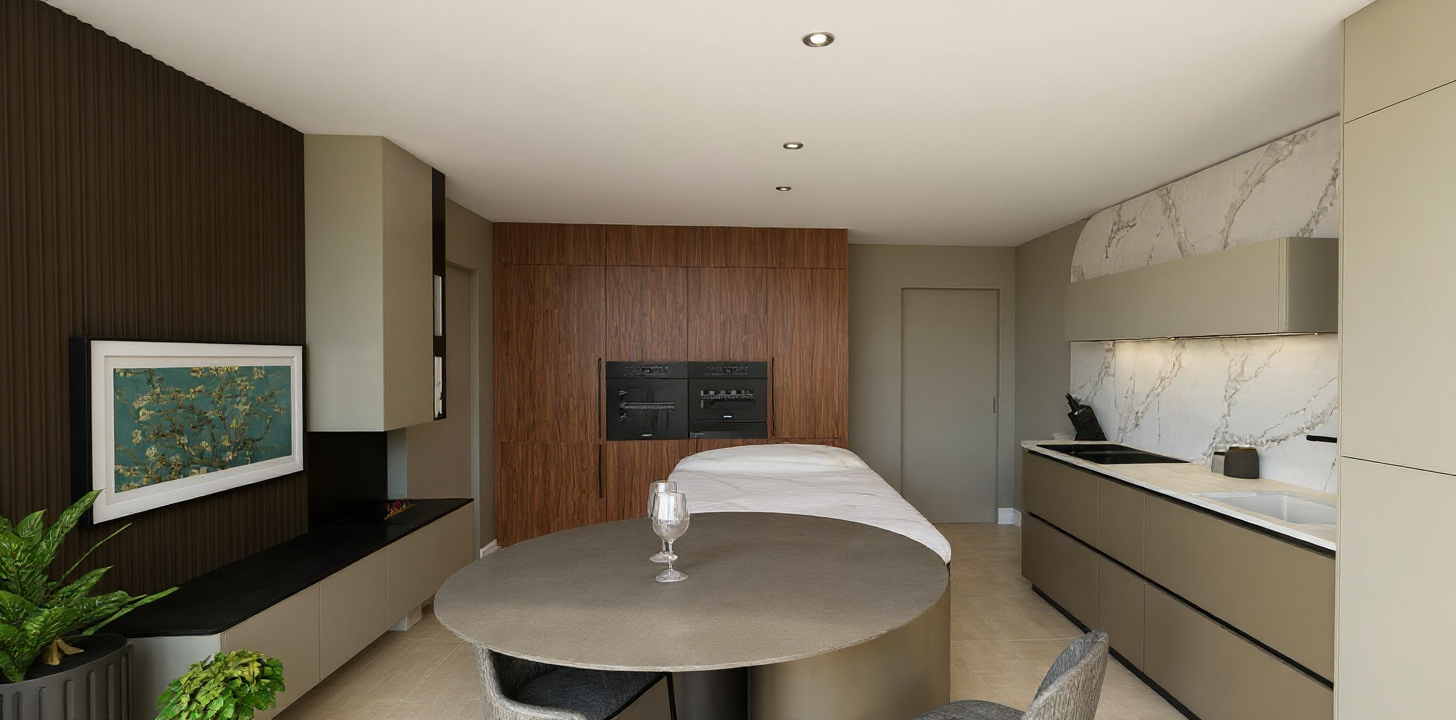 add a crazy geometric parametric ceiling made of pieces of wood for acoustic insulation and bars of led