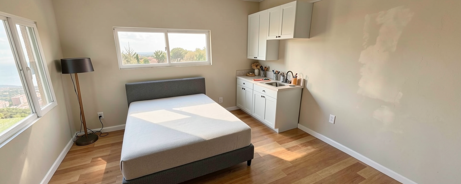 photorealistic architectural render of a family house with a warm european residential character the house features a red tiled roof white window and door frames and white wooden railings on balconies and exterior stairs the facade is finished in a soft peach color tone warm and inviting with a refined and elegant appearance clean proportions high quality materials realistic textures natural daylight soft shadows and a harmonious overall color composition