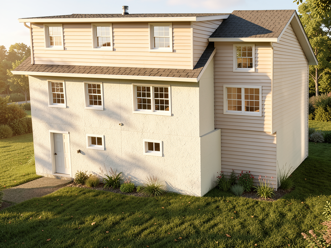 locate in aspen forest with stucco siding on the second floor stone siding around the garage doors and redwood garage doors