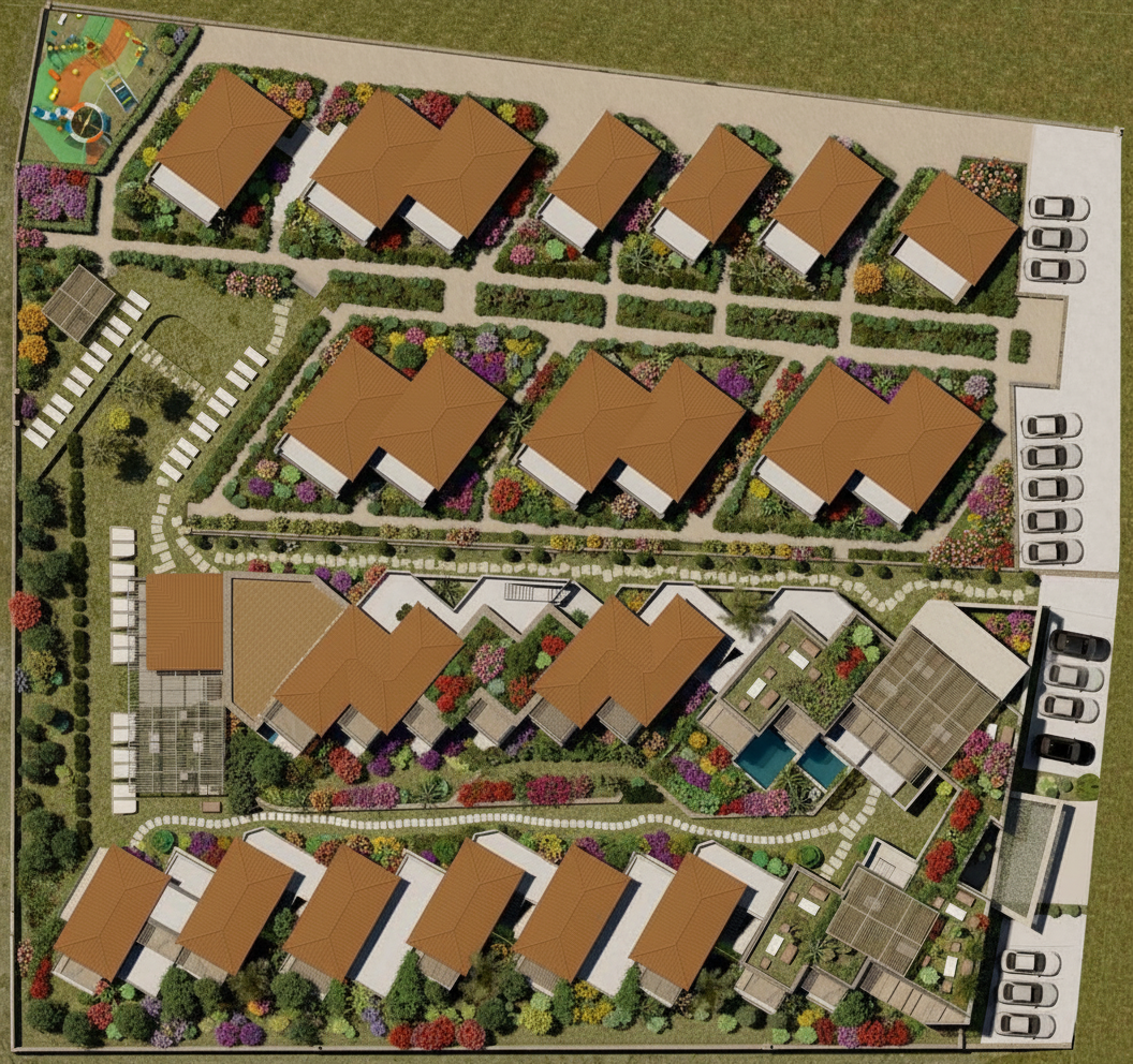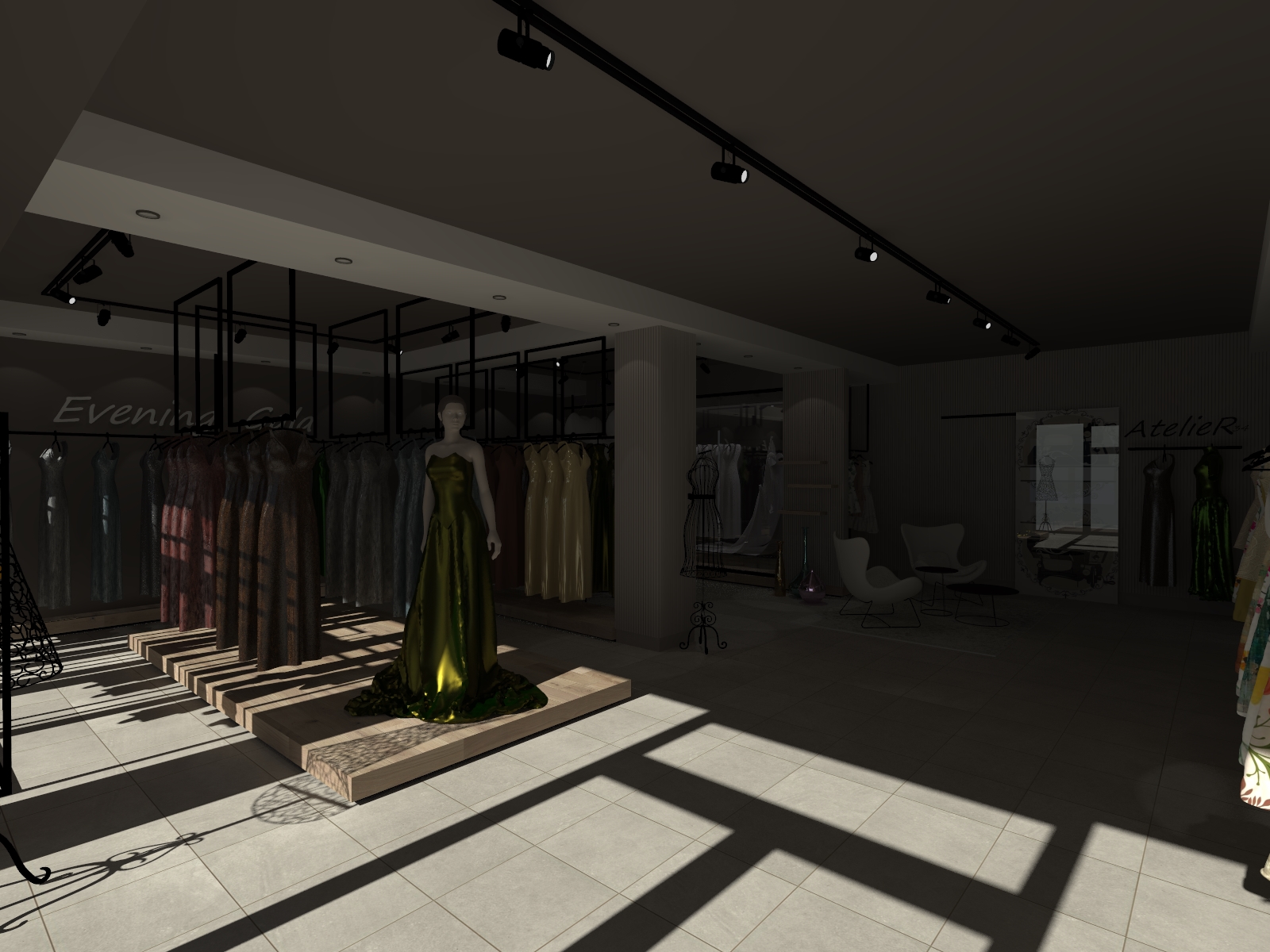 enhance the realism of this architectural rendering by improving lighting and shadows material and texture quality atmospheric depth and human scale elements focus strictly on photorealistic refinement of what is already present in the image do not add remove or invent any architectural elements furniture vegetation people or objects that are not already visible add just some more dresses and enhance the existing ones preserve the original design intent spatial composition color palette and layout exactly as provided apply these enhancements naturally across interior spaces as present in the image shadows should feel physically accurate materials should read as real world surfaces the atmosphere should convey a believable time of day and environment and any human scale references should appear natural and contextually appropriate put a soft warm light coming from underneath the wooded platforms do not hallucinate or introduce new elements only add some more dresses and enhance what exists