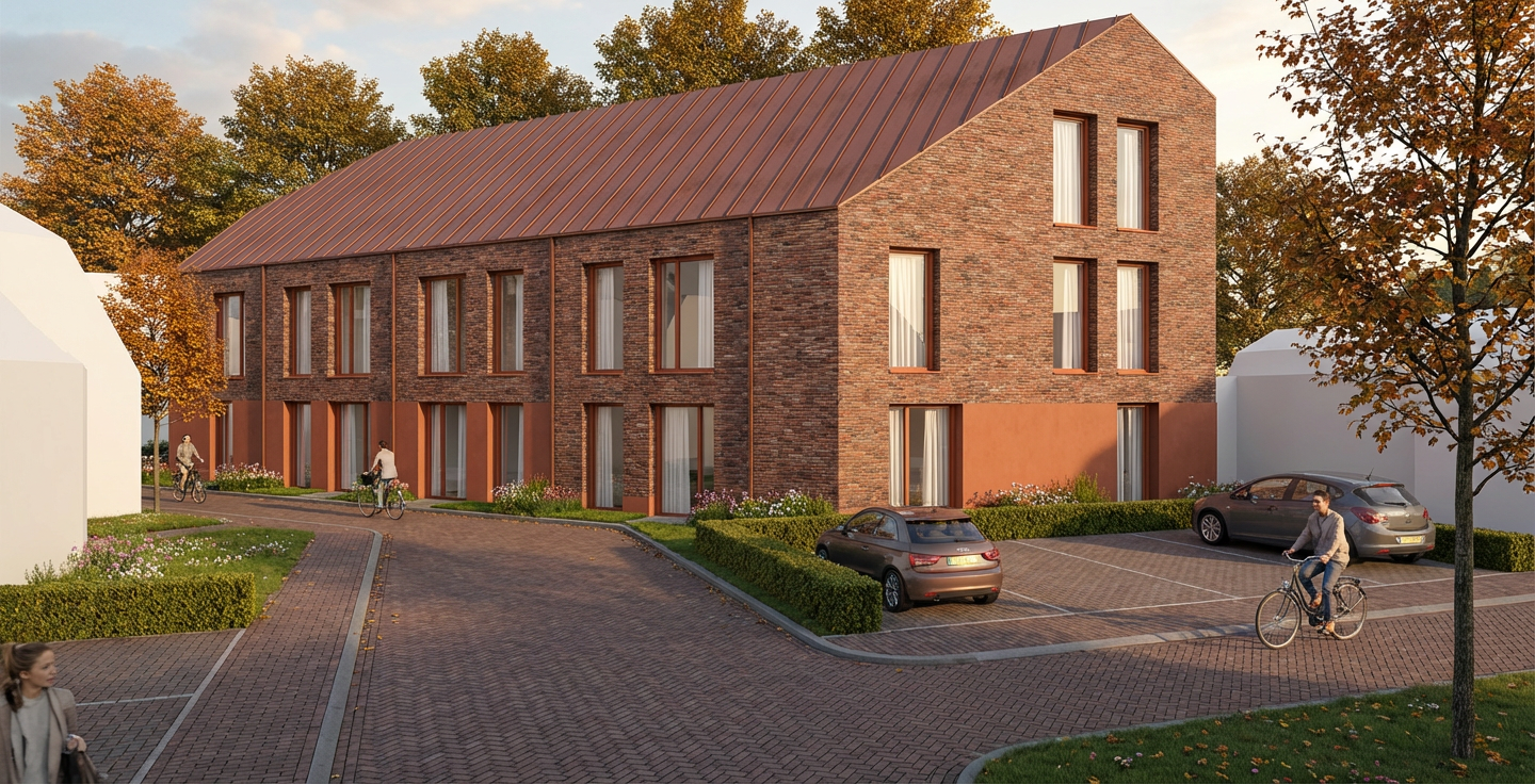 use this exact image as the base do not change roof shape and pitch window sizes and placements house massing and structure camera angle and perspective apply the following material and design changes only exterior materials paint all existing brick a weathered bronze tone deep earthy bronze green with subtle warmth maintain visible brick texture through the paint no flat overlay trim architectural elements paint fascia soffits and gable trim a soft matte black paint all porch columns matte black paint all porch railings matte black with a clean modern profile front entry replace existing front door with a walnut mid century modern door style flat panel or subtle vertical grain warm rich walnut tone add minimal modern hardware in black or aged brass front steps replace existing concrete steps with a harlequin diamond pattern painted finish use warm taupe and soft beige tones to mimic paver variation keep pattern subtle refined and slightly organic not high contrast landscape replace lawn with fresh healthy green grass add modern utah style landscaping drought tolerant plantings ornamental grasses low structured shrubs natural stone accents clean minimal planting beds with crisp edging remove all clutter pots and miscellaneous yard items cleanup remove all christmas lights from roofline and porch lighting mood bright natural daylight clean shadows elevated high end residential feel overall style modern transitional with mountain modern influence refined cohesive and elevated curb appeal