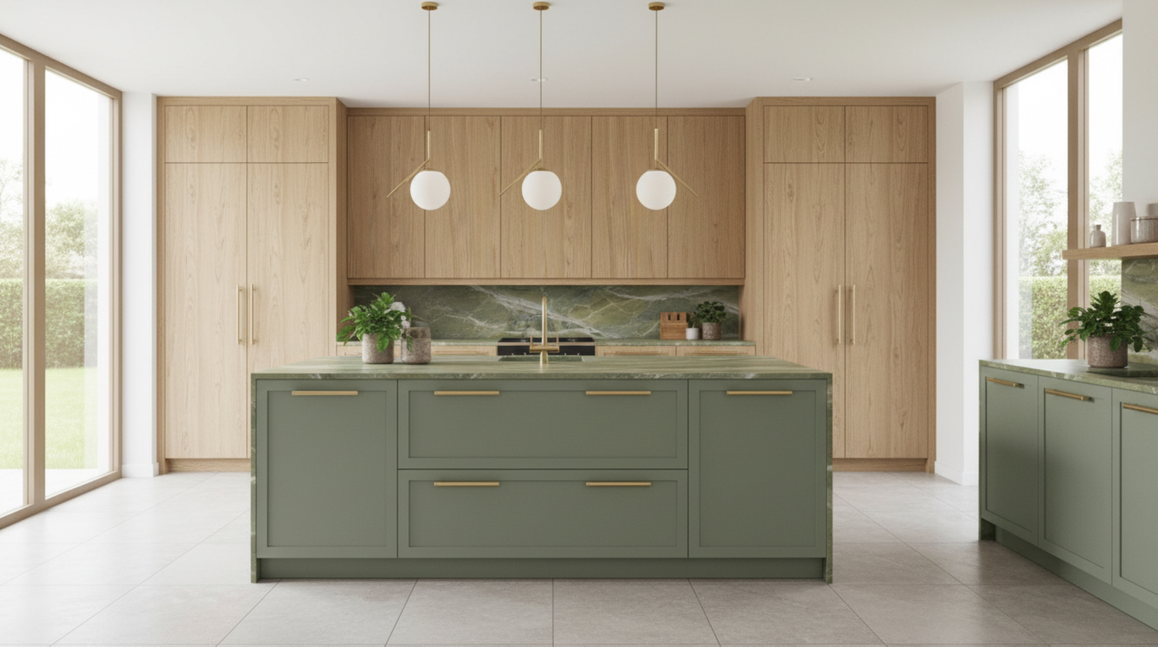 add a glass vase with white lilly s on the left side of the worktop