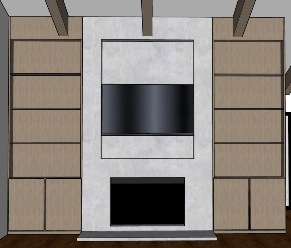 interior shot add glass shelving with lighting modern sleek cabinets warm ambient environment