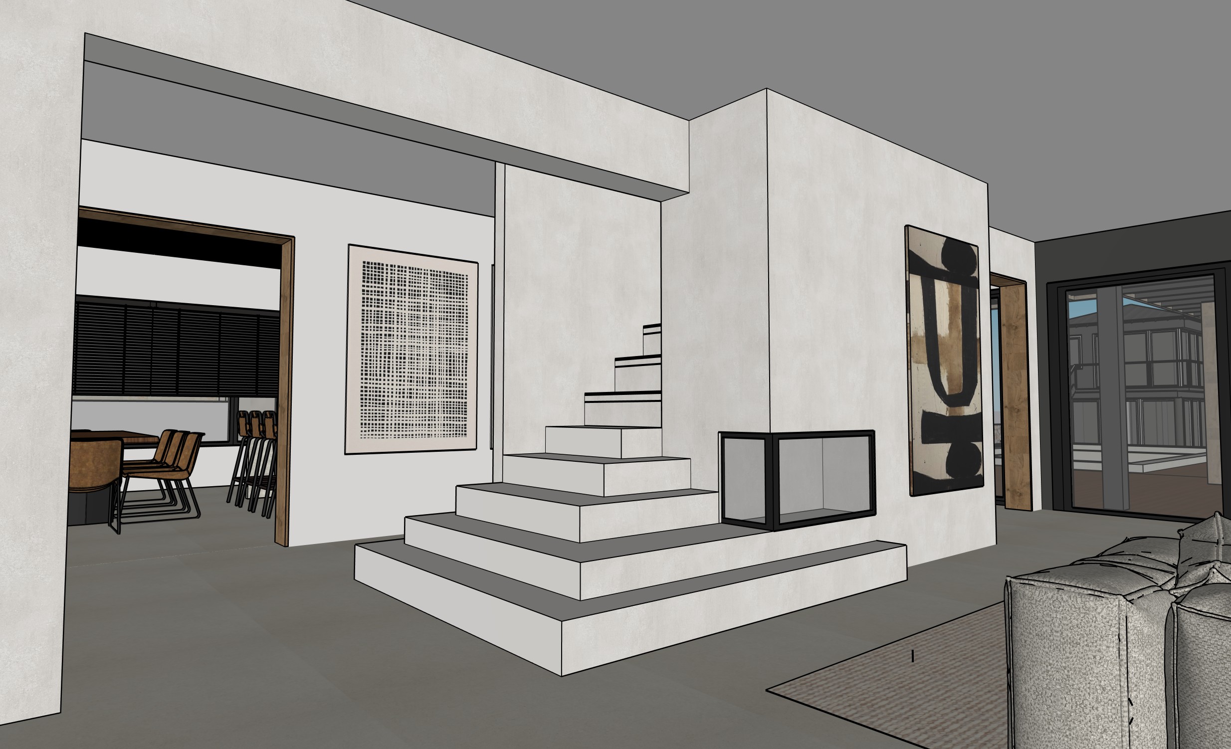 change flooring for polished concrete warm white color add warm kighting in the background room