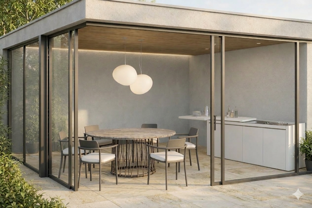 keep the entire image exactly as it is no changes to furniture kitchen walls floor ceiling windows lamps or any other objects only improve the realism light shadows materials and perspective should appear more natural and realistic without changing the arrangement proportions or colors of the existing elements