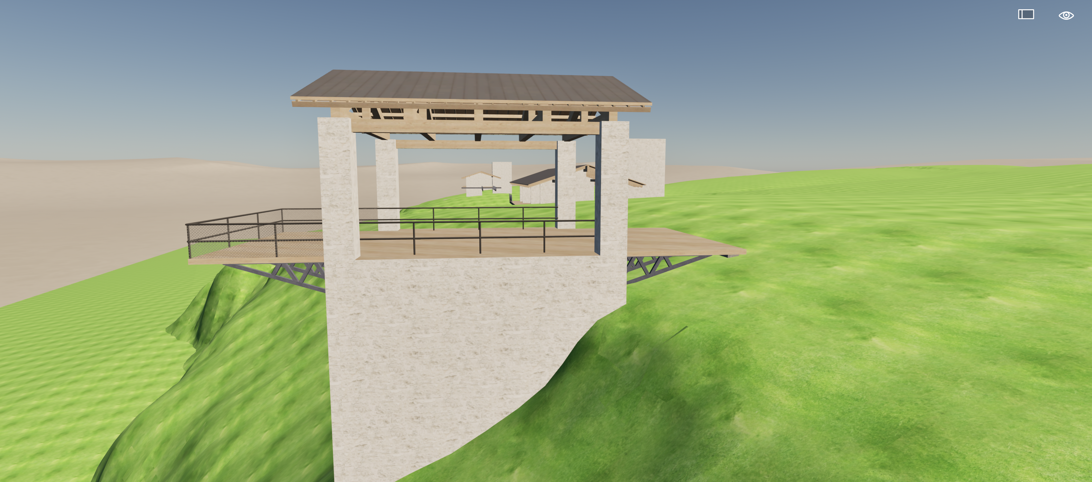 beautiful white stone with hand hewn oak beam work forest context trail leading to building on right side of image
