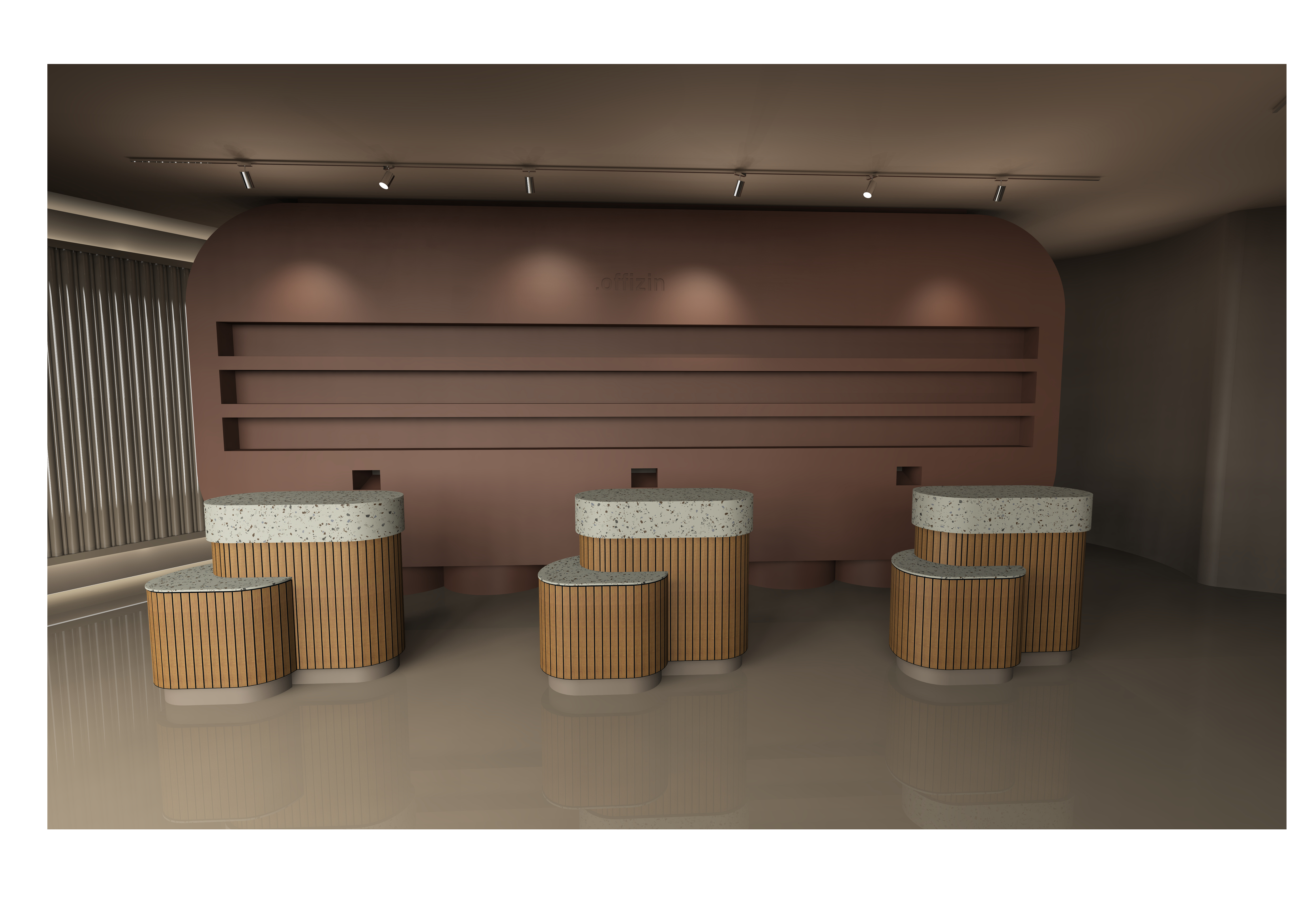 improve lighting profesional store lighting add led exclusivly under terazzo countertops add a fine plaster microcement texture to every wall except terminals improve lighting realism and feel reduce extreme brightness on the left add more brightness on the ride for a more cohesive look