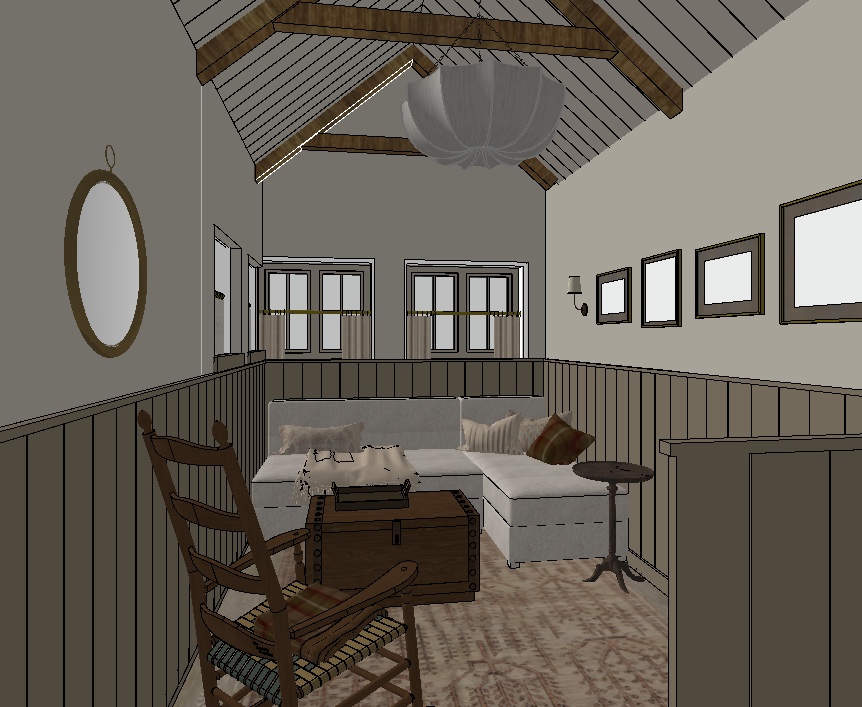 the timber panelling on the wall is painted the timber slats on the ceiling are painted
