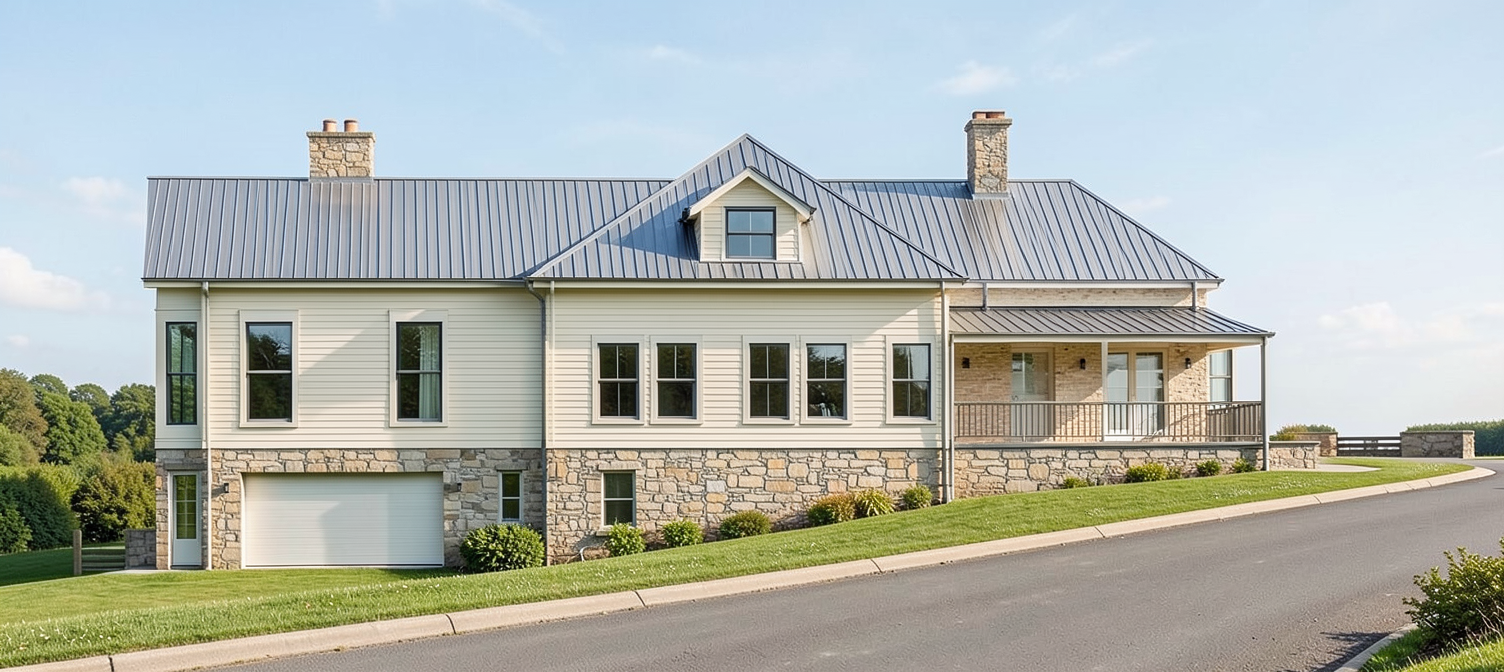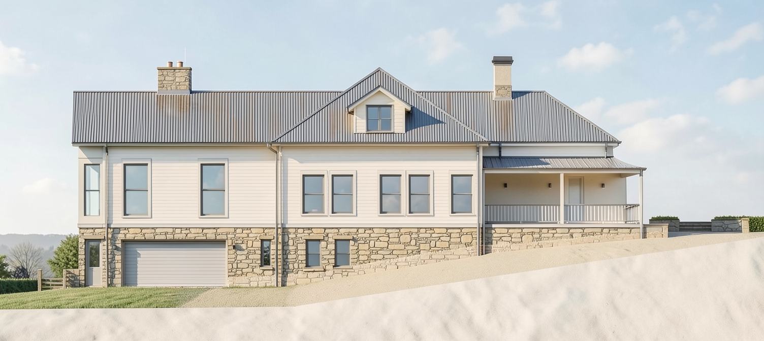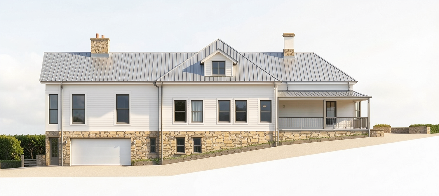fix roof on left hand to follow the exact line of thevertical roof sheeting remove interior curtains do not add new windows remove the lower rhs window on the sandstone wall