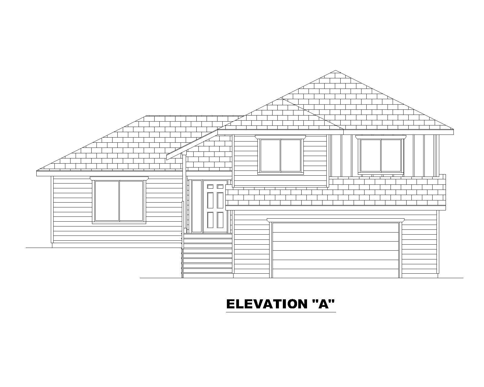 watercolor render of modern farmhouse style home white with dark trim into the side of a hill on the left side include trees and an alaska like environment in the background simple driveway and walkways in front of the home