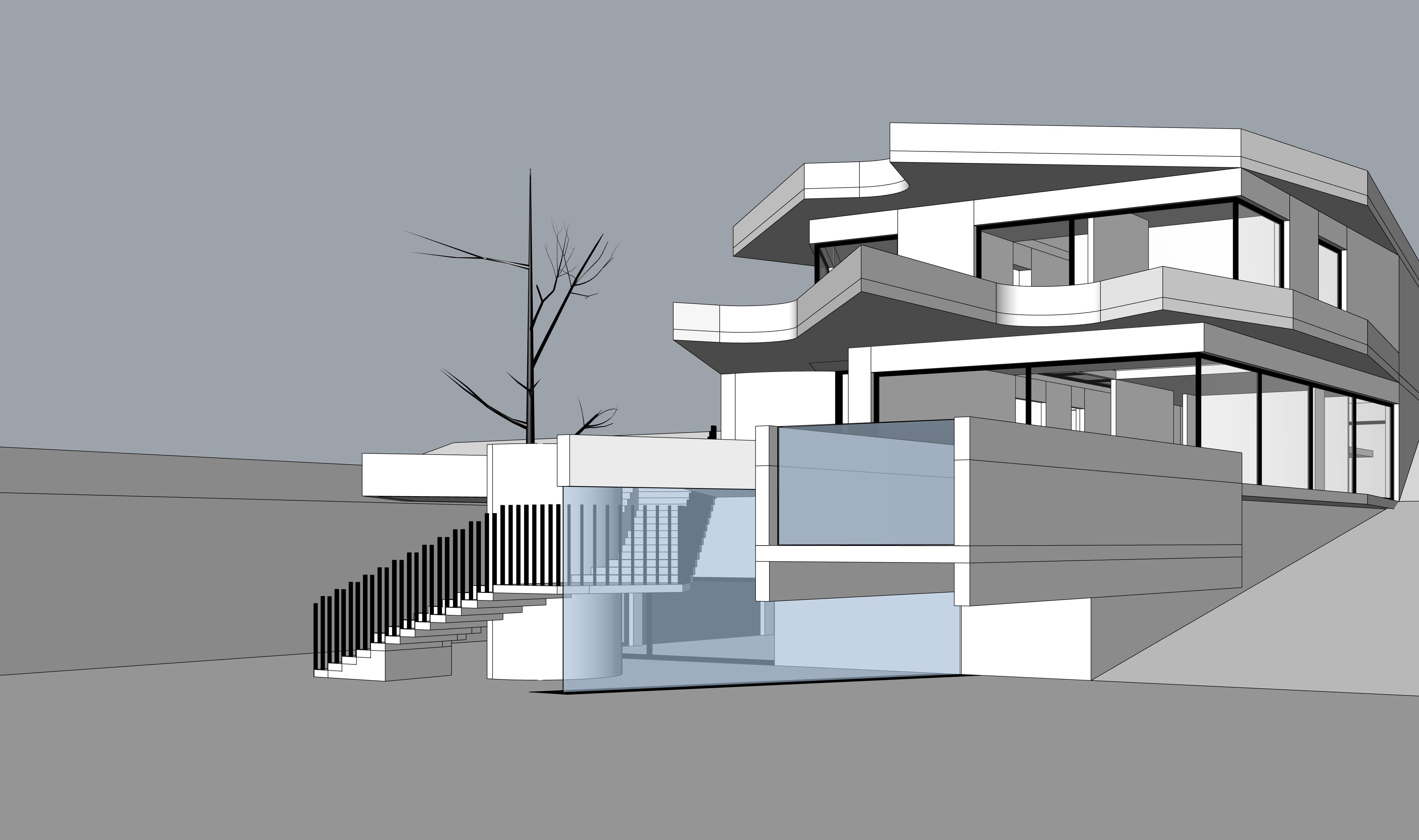 add light concrete realistic texture on the building small cobblestone texture on the ground and add water on the parts that are blue add sky in the background