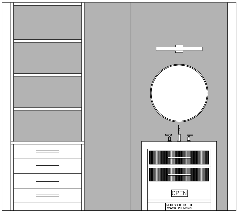 everything that is grey in the image is wood tone the vanity drawers shelves are white with wood tone behind the shelves