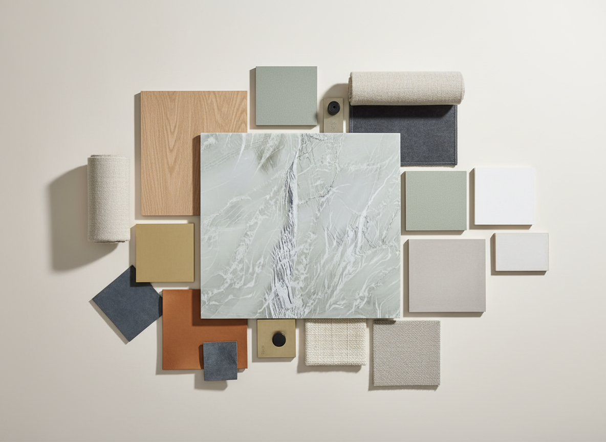 create a designer bathroom focused on the vanity with the monaco fantasy quartzite as the countertop
