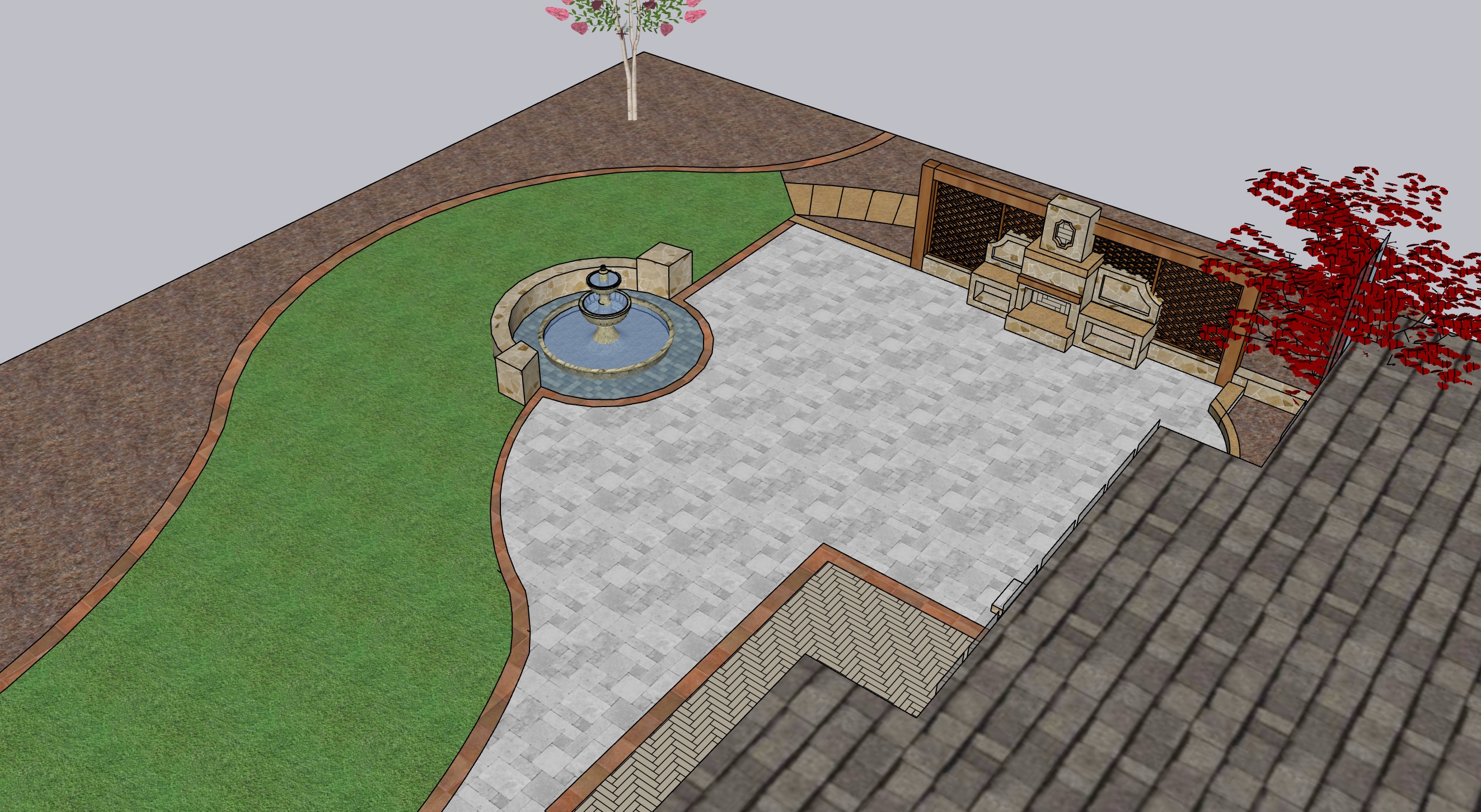 the patio is natural blue stone pavers with cream grout keep the other colors the same throughout keep the existing border brown and the keep the herringbone section as is on the patio as well