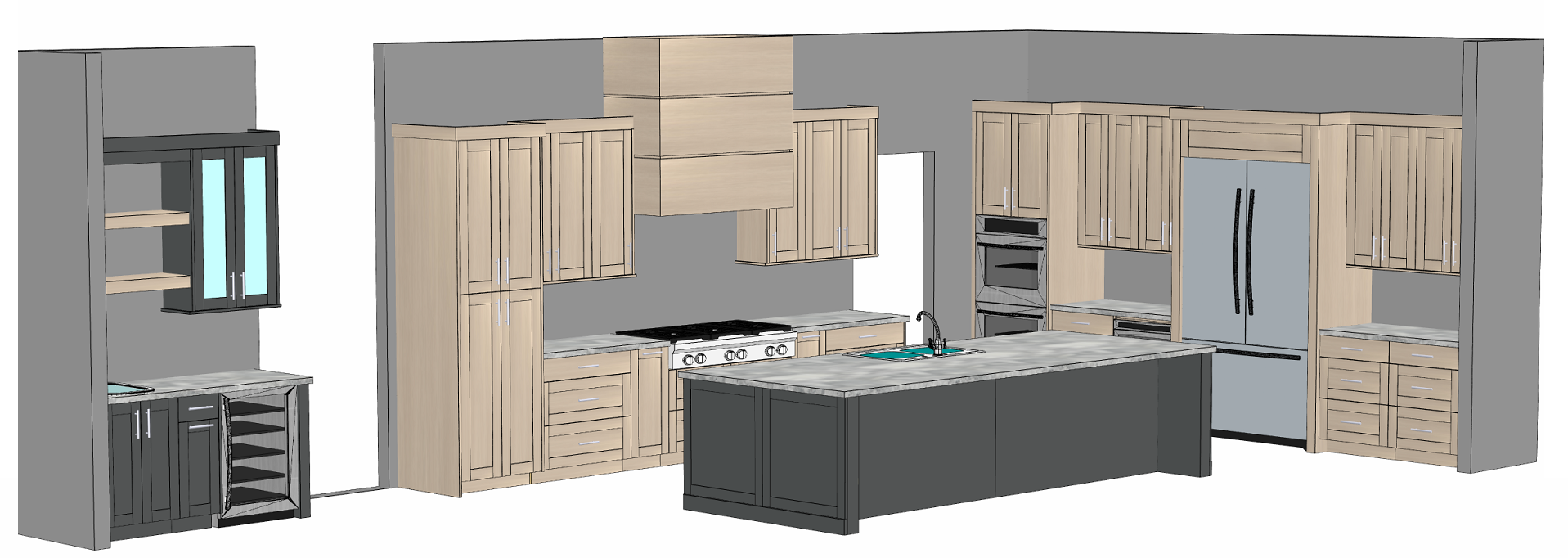 do not change the cabinets in any way preserve the exact cabinet colors materials finishes dimensions door and drawer styles hardware spacing alignment and all geometry exactly as shown do not alter the countertop shape backsplash appliances flooring lighting fixtures or wall structure only remove the construction materials clutter and mess from the scene clean the room and make it look finished and staged add a few simple tasteful home accessories appropriate for the style of the space but do not add or remove any furniture windows or architectural elements maintain the original lighting direction and realism enhance clarity and polish the photo while keeping the cabinetry and room design completely unchanged do not alter the lighting to keep the cabinet colors as they are in the image keep the white background just make it look realistic