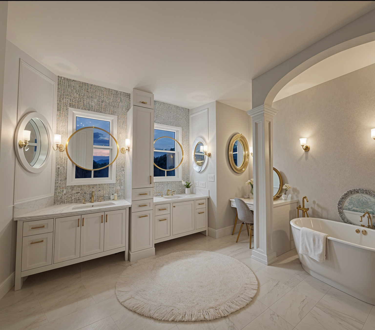 ultra realistic architectural rendering high resolution physically based rendering pbr professional architectural photography quality accurate real world materials and scale color control preserve all original colors exactly as specified cabinetry flat panel beaded inset cabinets painted soft white warm white not gray smooth painted finish crisp reveals realistic paint texture accurate shadow lines backsplash classic white stacked subway tile subtle rippled handmade texture soft surface variation clean grout lines matte to low sheen finish no gloss exaggeration countertops soapstone deep charcoal to soft black tone natural veining honed finish realistic edge profile subtle light absorption not reflective or polished flooring natural warm wood tone realistic wood grain and plank scale consistent warm coloration matte finish physically accurate reflectance lighting natural daylight as primary light source soft global illumination realistic light bounce undercabinet lighting with warm diffused led glow even distribution no hotspots true to life brightness exterior view windows reveal natural scenery trees greenery soft sky realistic depth natural colors no blown highlights no oversaturation ray traced lighting and shadows ambient occlusion balanced exposure hdr realism sharp focus clean edges noise free artifact free cinematic realism without stylization