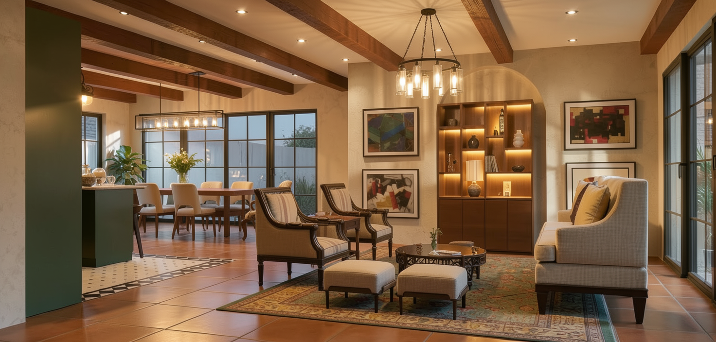i would like a super realistic render the colors should not change at all the wardrobe doors are mirrors and i would like led lighting running along the top of the wardrobe and on the plasterboard on the wall to the right