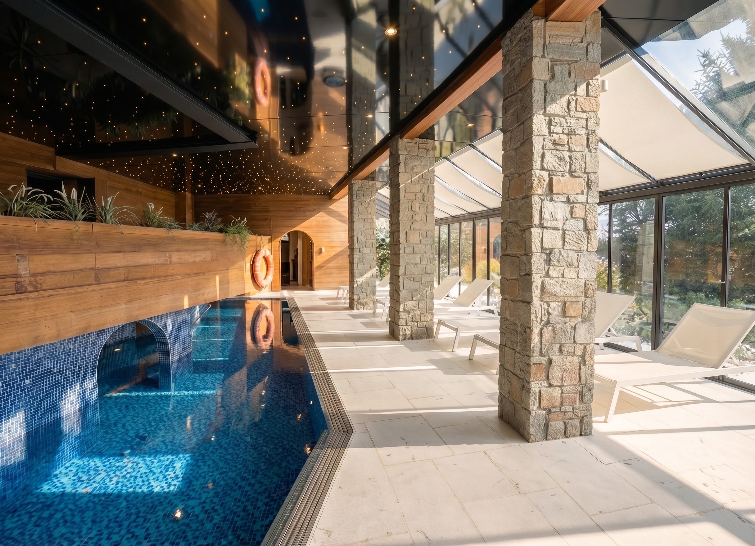 change wooden railing of left balcony to glass put white ethimo furniture behind on balcony