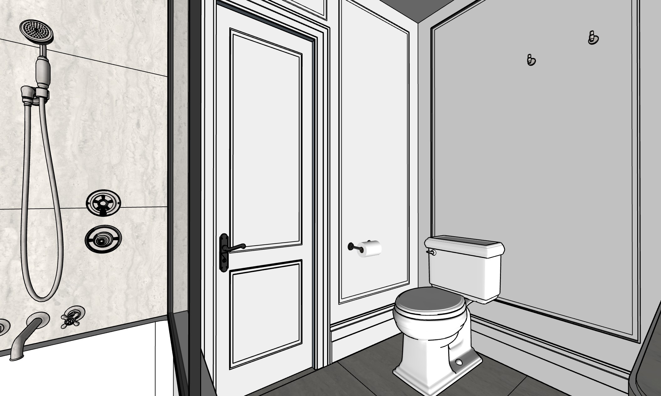 the floor should be the same tile as the one in the tub area run the herringbone on the other direction