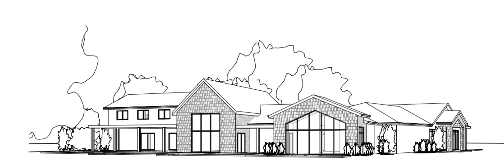 black metal roof stone and stucco walls black trim black glass windows