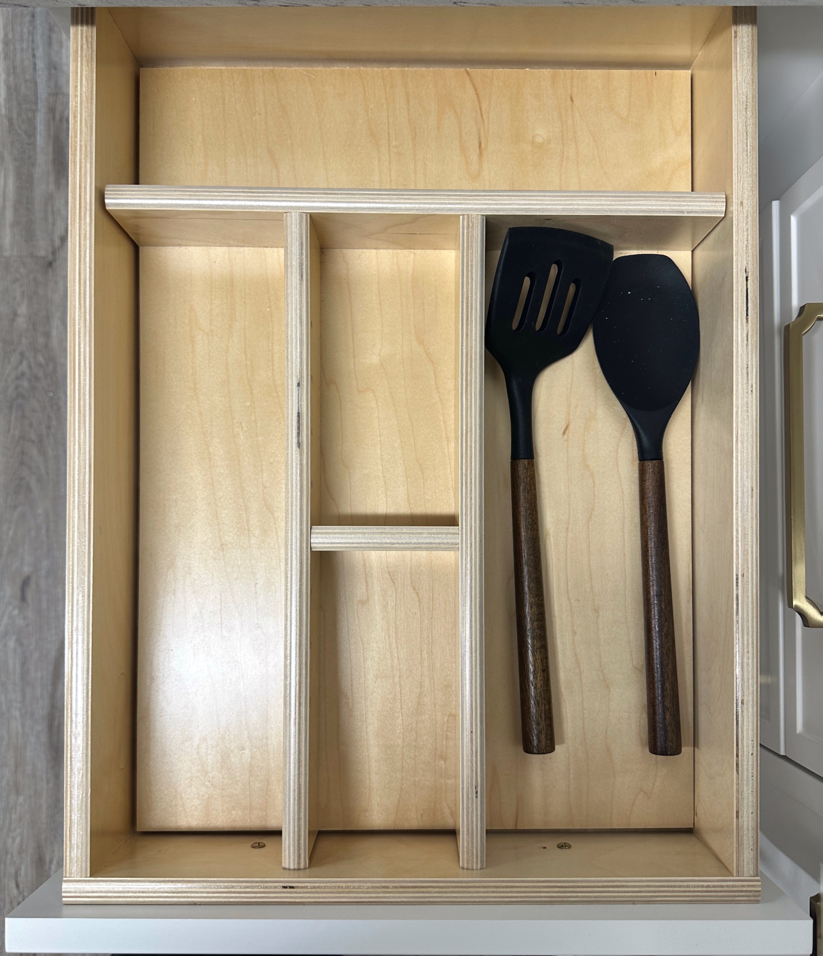 add more natural light completely remove the background so the focus is completely on the drawer stage this drawer with silverware keep the drawer front