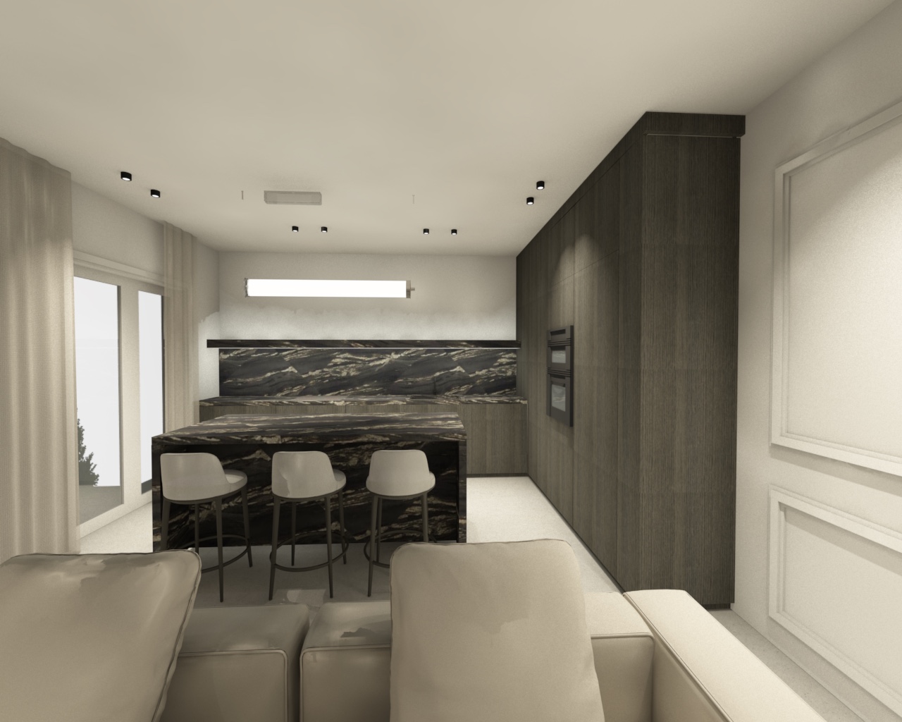 remove the white marble from the wall and keep colors grey and put some decoration