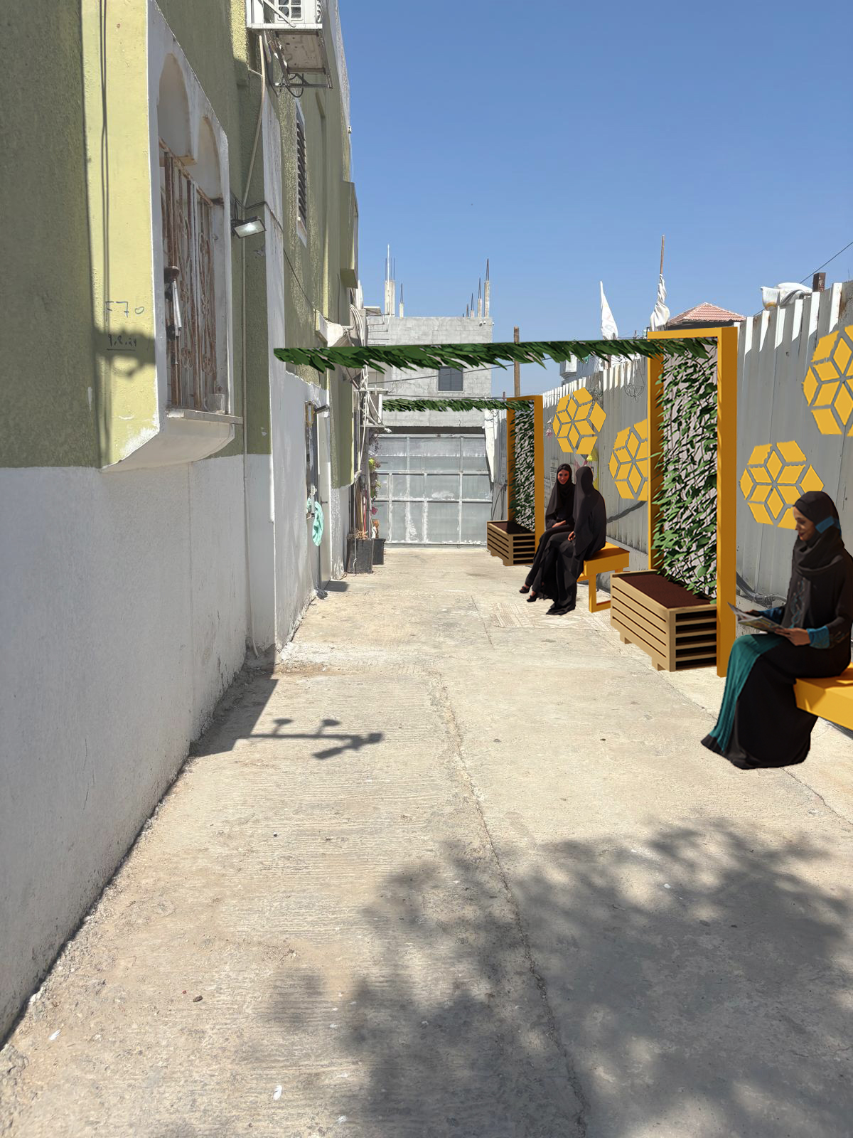 i need a more realistic image of this picture it is a lobby which i dont want to change anything in i just want us to work on making the seats with people sitting on it and the two planters with plants creating shade be careful its a planter a space bench with people a space a planter a space bench with people also behind the benches is a mural painted on the wall