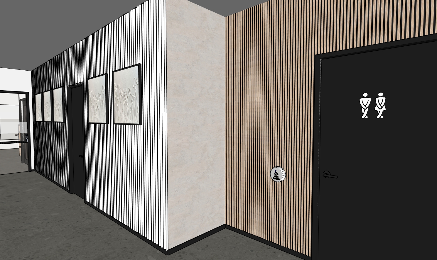 create a high resolution photorealistic render of this interior maintain the exact composition camera angle architectural elements and furniture arrangement do not change any walls windows fireplace openings proportions or furniture placement enhance all materials and finishes for ultra realistic detail improve texture clarity shadow depth light reflections and surface realism add soft natural daylight streaming through the windows combined with subtle warm artificial ambient lighting to enhance depth and atmosphere maintain the original design while upgrading overall lighting contrast and material quality for a refined lifelike result add more lighting add white fluted vertical wall paneling for the wall with the art work