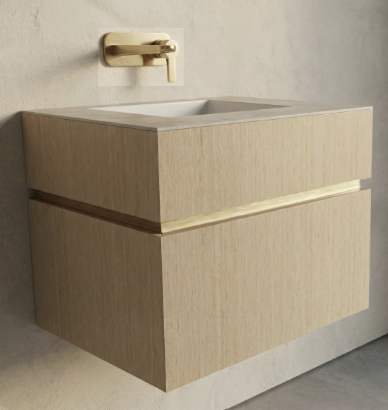 render the vanity with brass details the top is beige