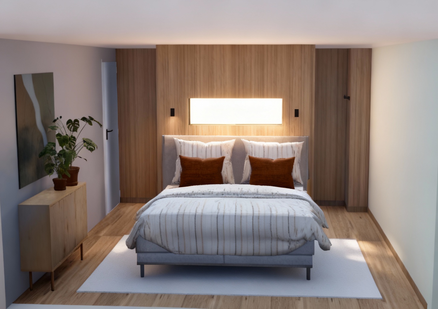 keep the exact architecture proportions roof shape windows doors and layout of the original house do not modify structure volumes or openings only change the exterior materials to replace existing brick with rinox lotis blanc amande brick replace stone tiles above the small garage roof and entrance with brown metal tiles replace horizontal vinyl siding on the side of the house with maibec appalachian brown 073 wood siding adjust garage door color to match the maibec appalachian brown siding style contemporary residential renovation lighting soft natural daylight photorealistic architectural photography ultra realistic high detail client ready exterior renovation concept
