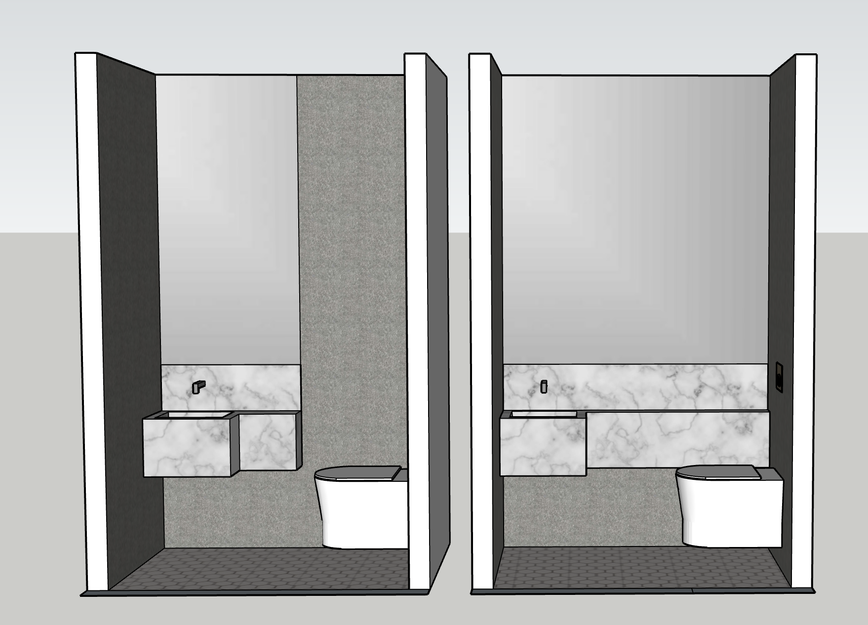 create photo realistic rendering marble sink lots of dark veining mirror above textured grey walls