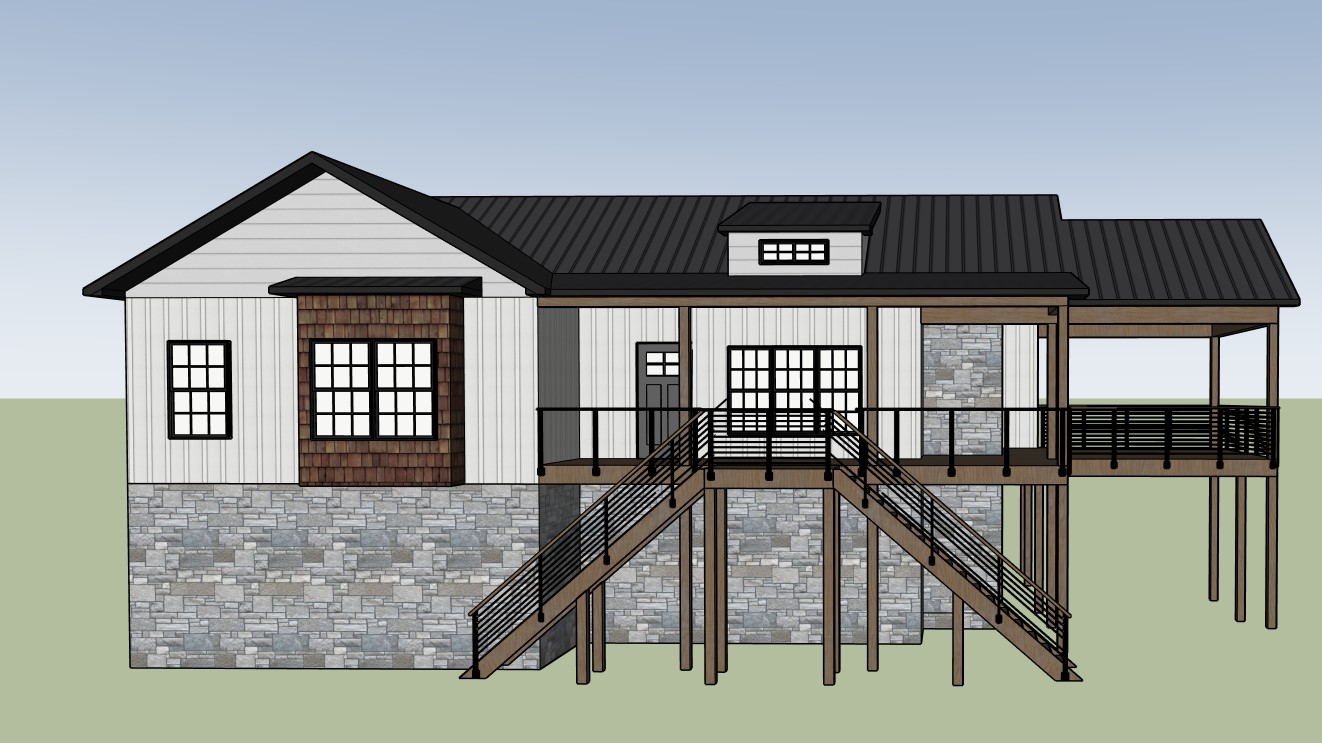 home sits in appalachian mountains with mature trees on the left side driveway enters on the bottom level left side stone foundation and cable railings small mountain view on right with mature evergreen trees mature landscaping on left front