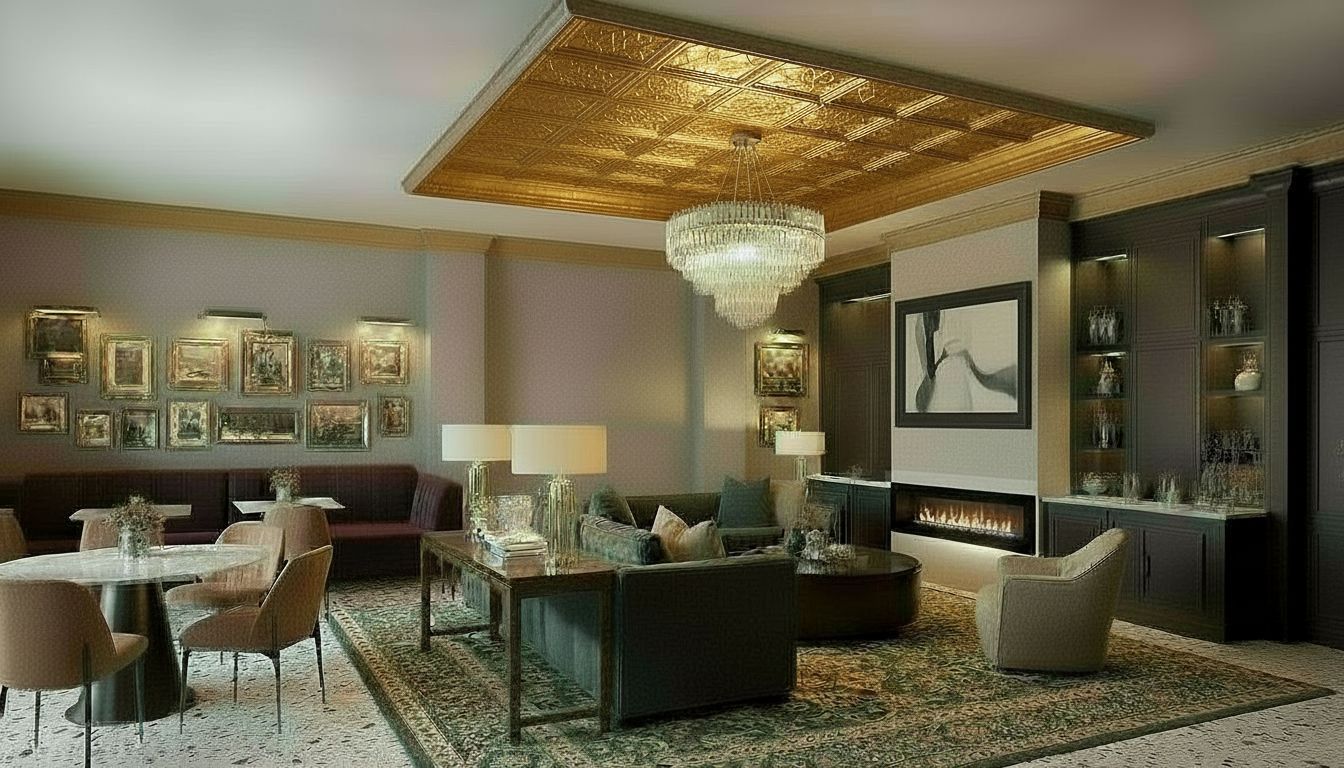 add black coffered ceiling