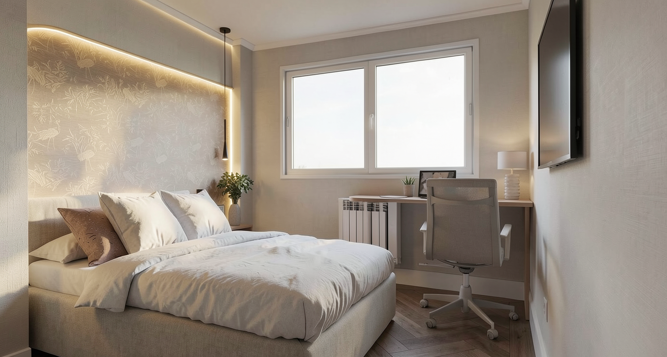crea una imagen fotorealista a partir de esta de sketchup realza las texturas e iluminacion para que queda todo natural y realista