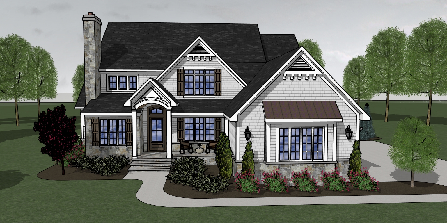 partly cloudy sky deciduous trees in background add gutters and downspouts