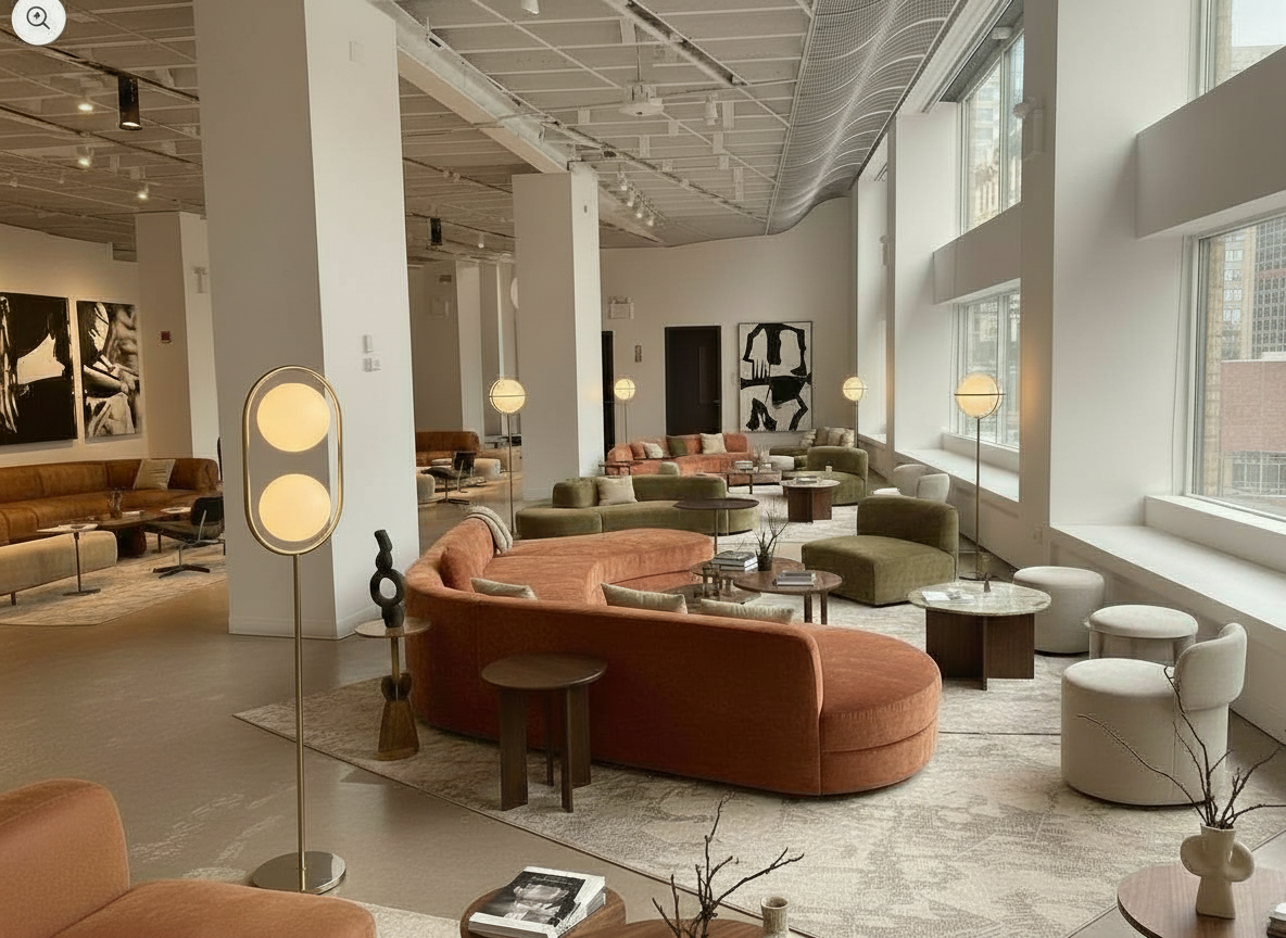 sunset light with beautiful shadows grey tiled floors sea views rattan rug the interior is bright