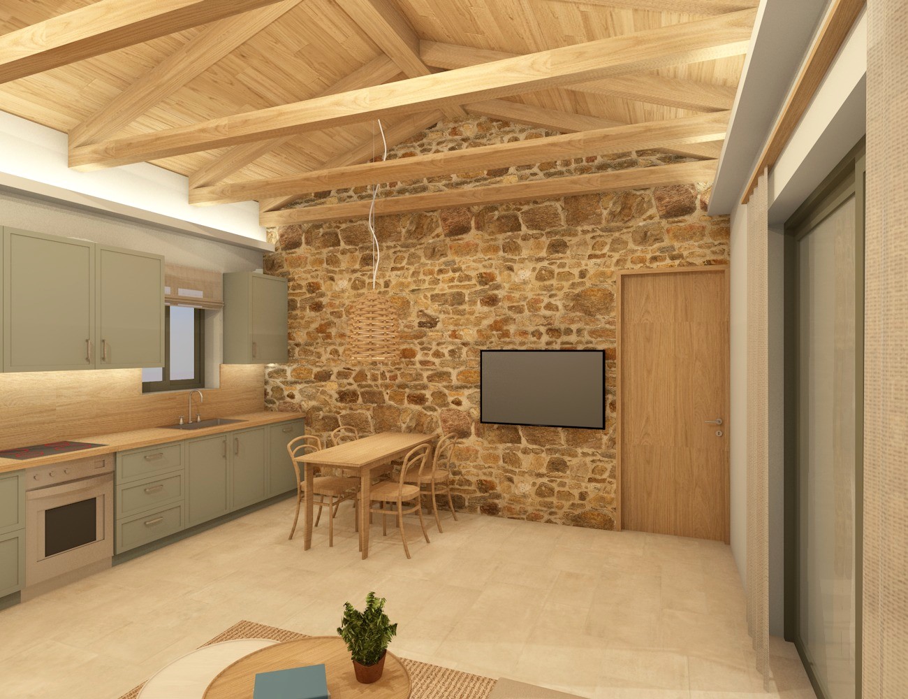 add more natural light keep the kitchen as it is maintain the same floor but make it more realistic add more realistic curtains at the right side of the image dont change the color of the windows