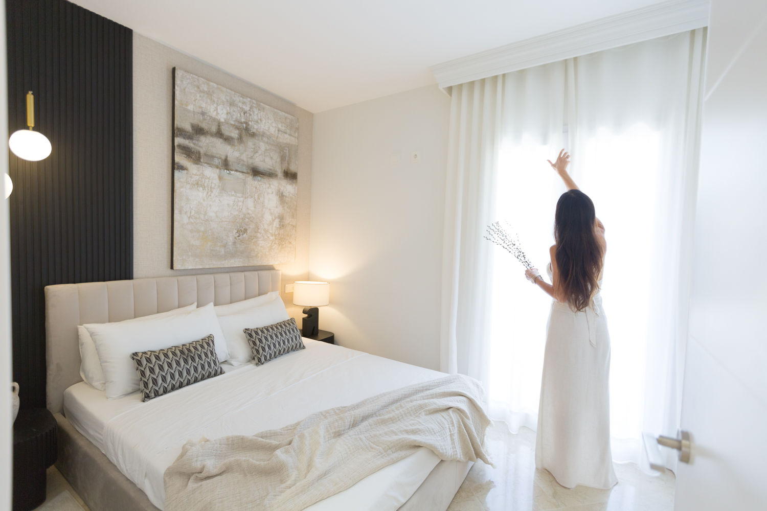 make the room look bigger and make it more quality add a big rug under the bed in light color
