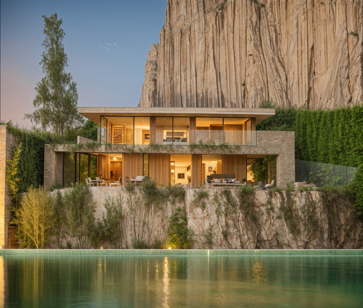 zaha hadid exterior shot luxury resort outdoor terrace designed by foster partners with lots of vegetation architecture