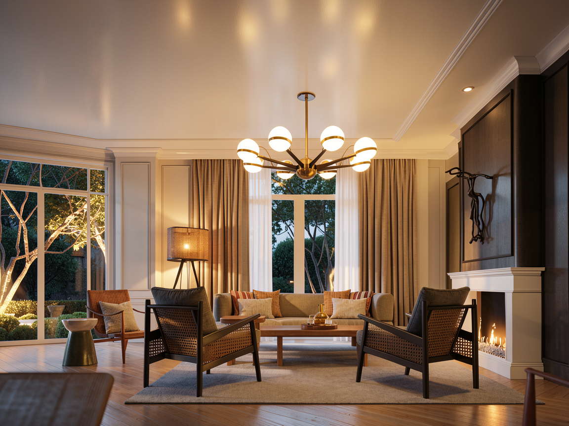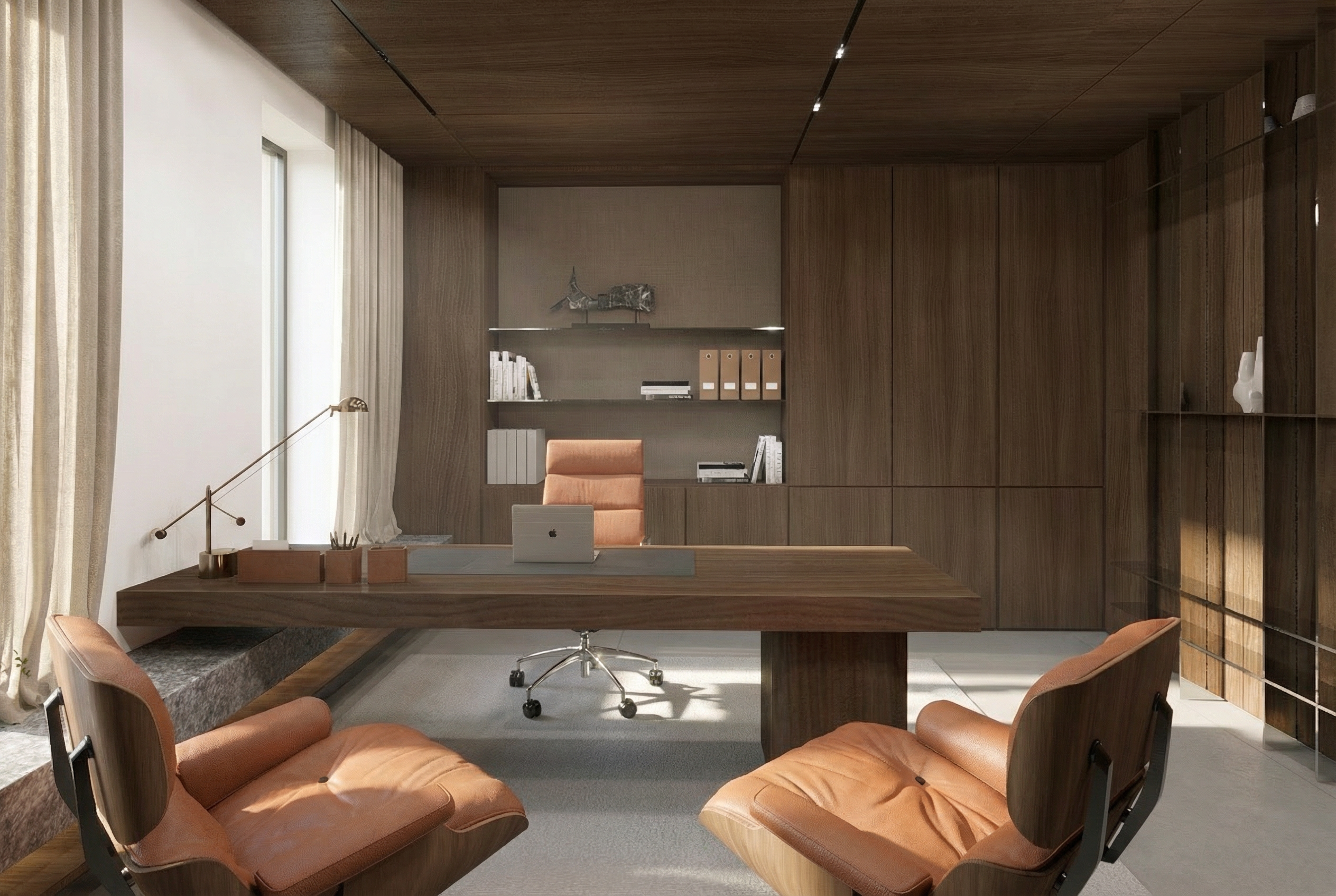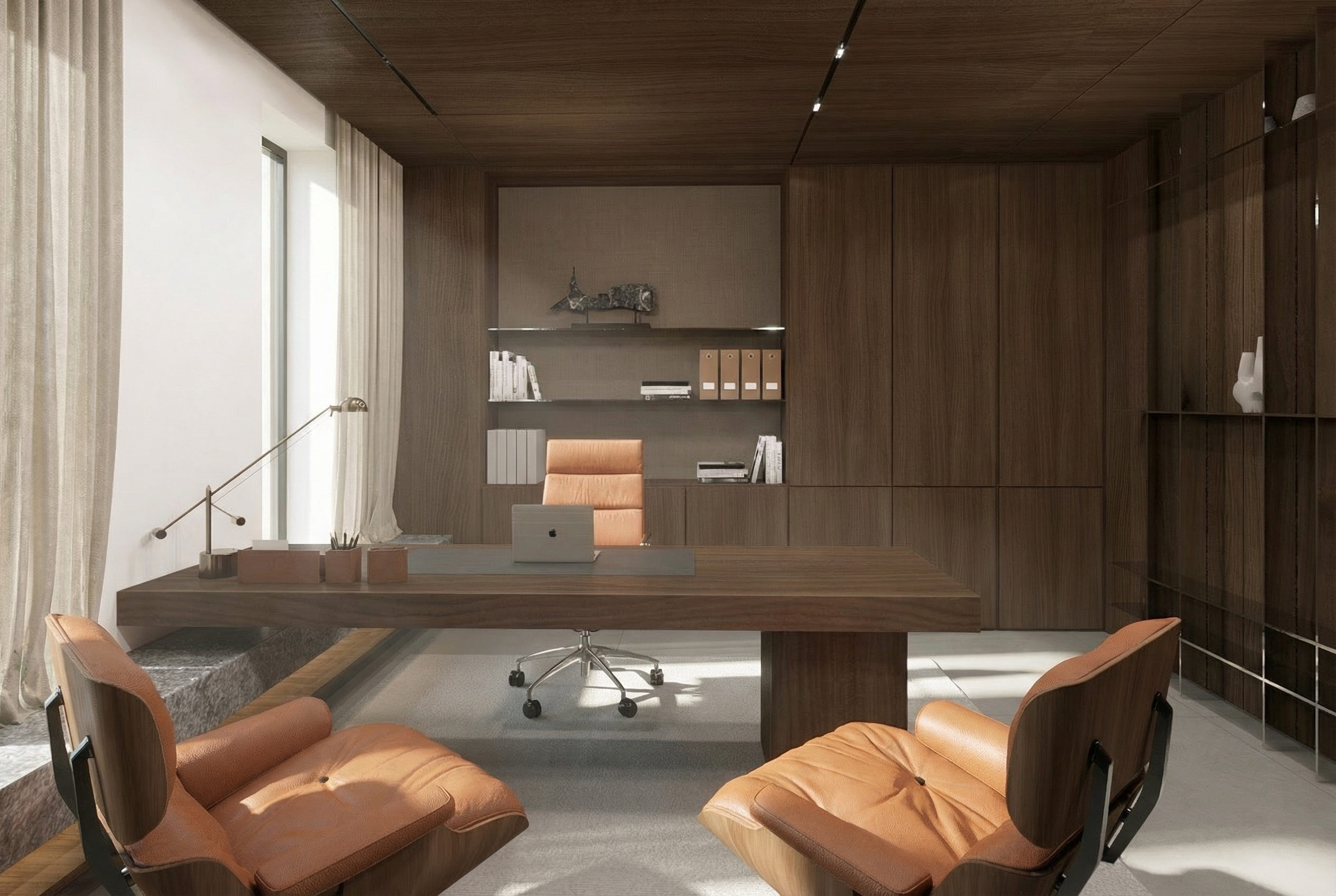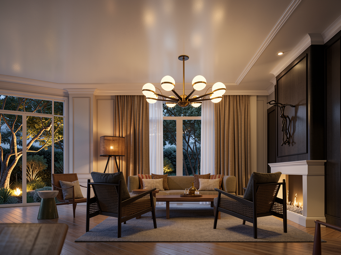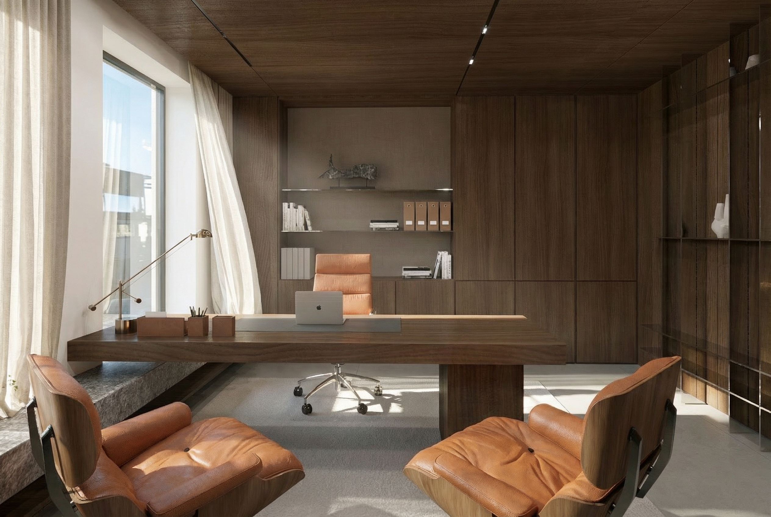 transform this non realistic architectural visualization into a hyper realistic photorealistic render strictly preserving the exact original composition framing proportions structure and perspective swap all materials to highly realistic versions preserving the main color palette add natural subtle gloss and sheen to metals and plastics realistic glass with sharp reflections of surroundings and sky stone textures with seamless non repeating natural variations detailed dark wood surfaces do not change wood color with visible grain s oje knots and light roughness texture for authenticity show vertical flowing curtains visible through all windows softly lit and textured like linen or sheer fabric maintain bright high key lighting throughout with dynamic light sources creating high contrast sharp shadows and vivid highlights no dark areas overall bright and airy atmosphere enhance depth with realistic environmental reflections soft atmospheric haze and professional 8k resolution details architecture